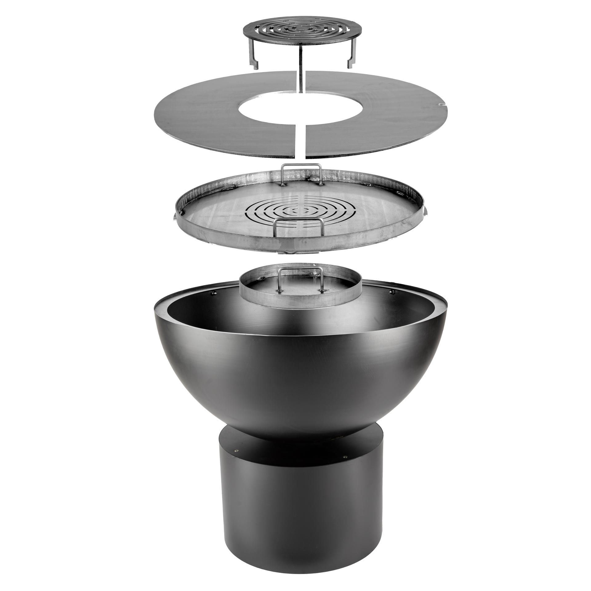Barbecue Primula with elegant yet sturdy base highlights the iconic design of the half-sphere brazier. High-temperature black steel.