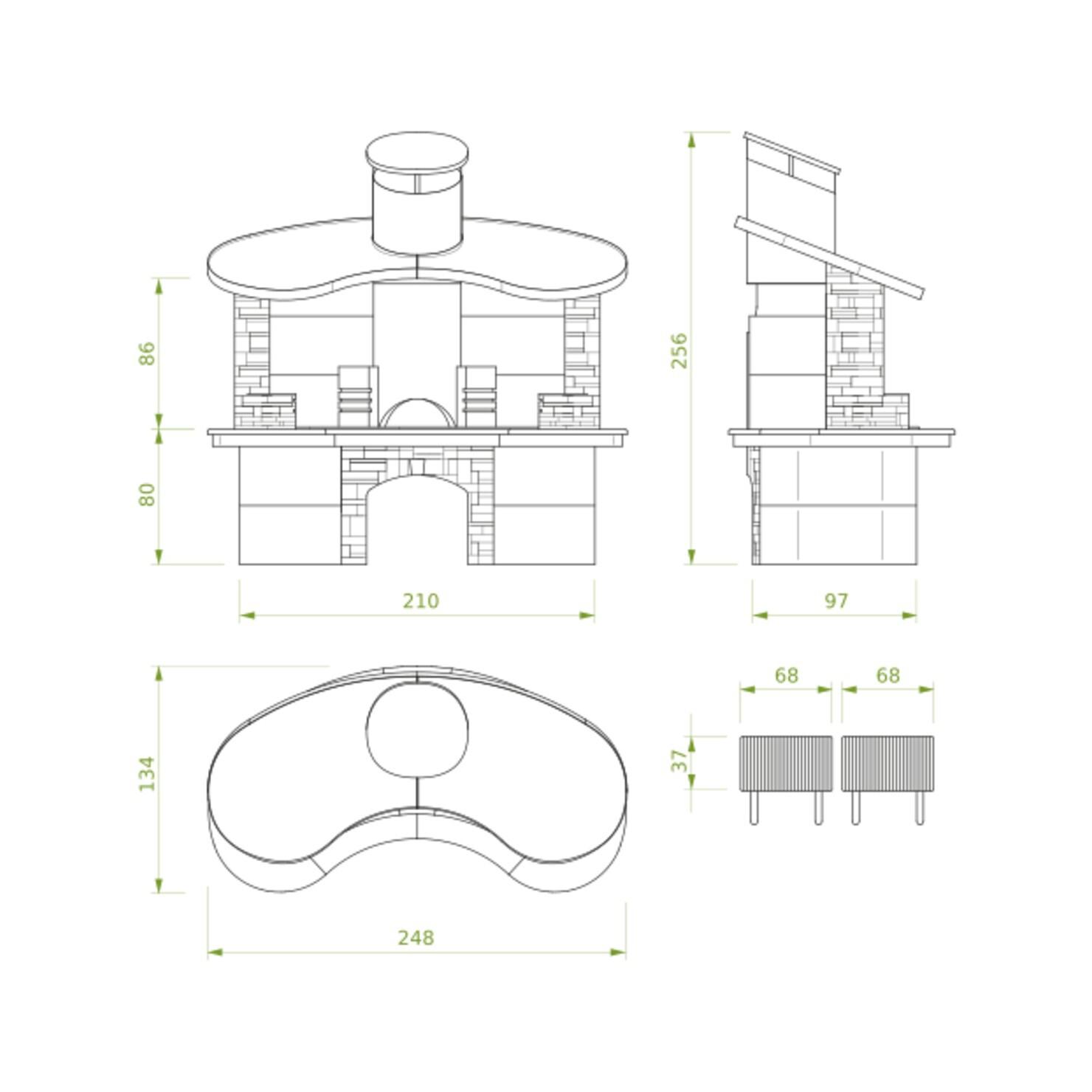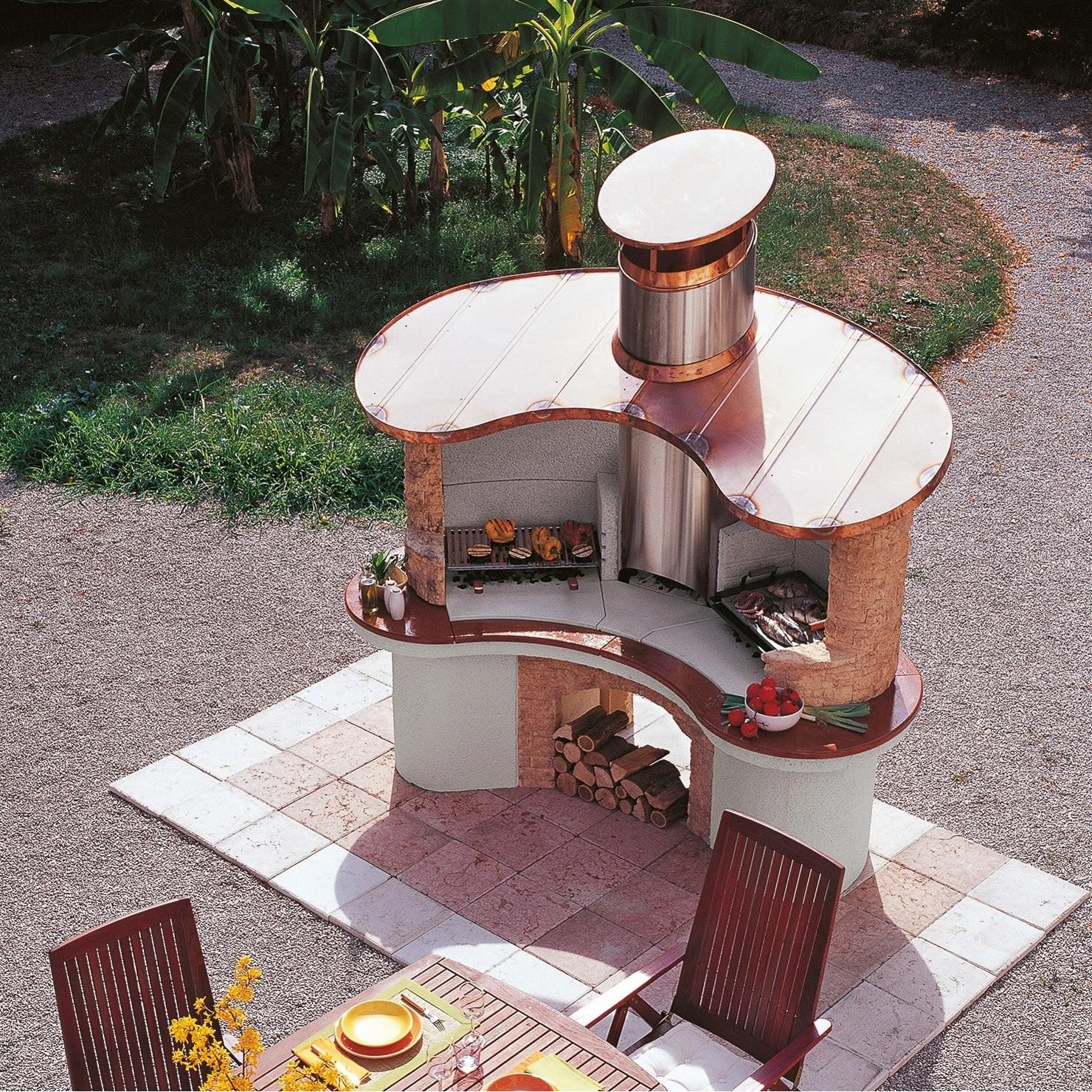 If you have no space problems and want something truly unique and exclusive this is the right wood barbecue for you. Elegantly finished in technical stone with a copper roof, it has a double cooking station.