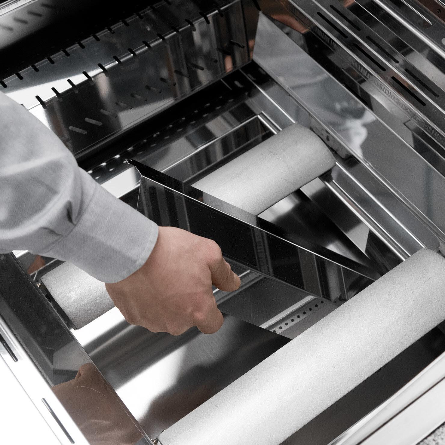 Do you have space problems but don't want to give up maxi barbecues with friends? Romeo 90 is the ideal stainless steel gas barbecue for you. Free-standing, it can be easily placed on a countertop or cart. Ideal for grilling and griddle cooking even for many people, thanks to the 90 cm grill. Practical and easy to clean.