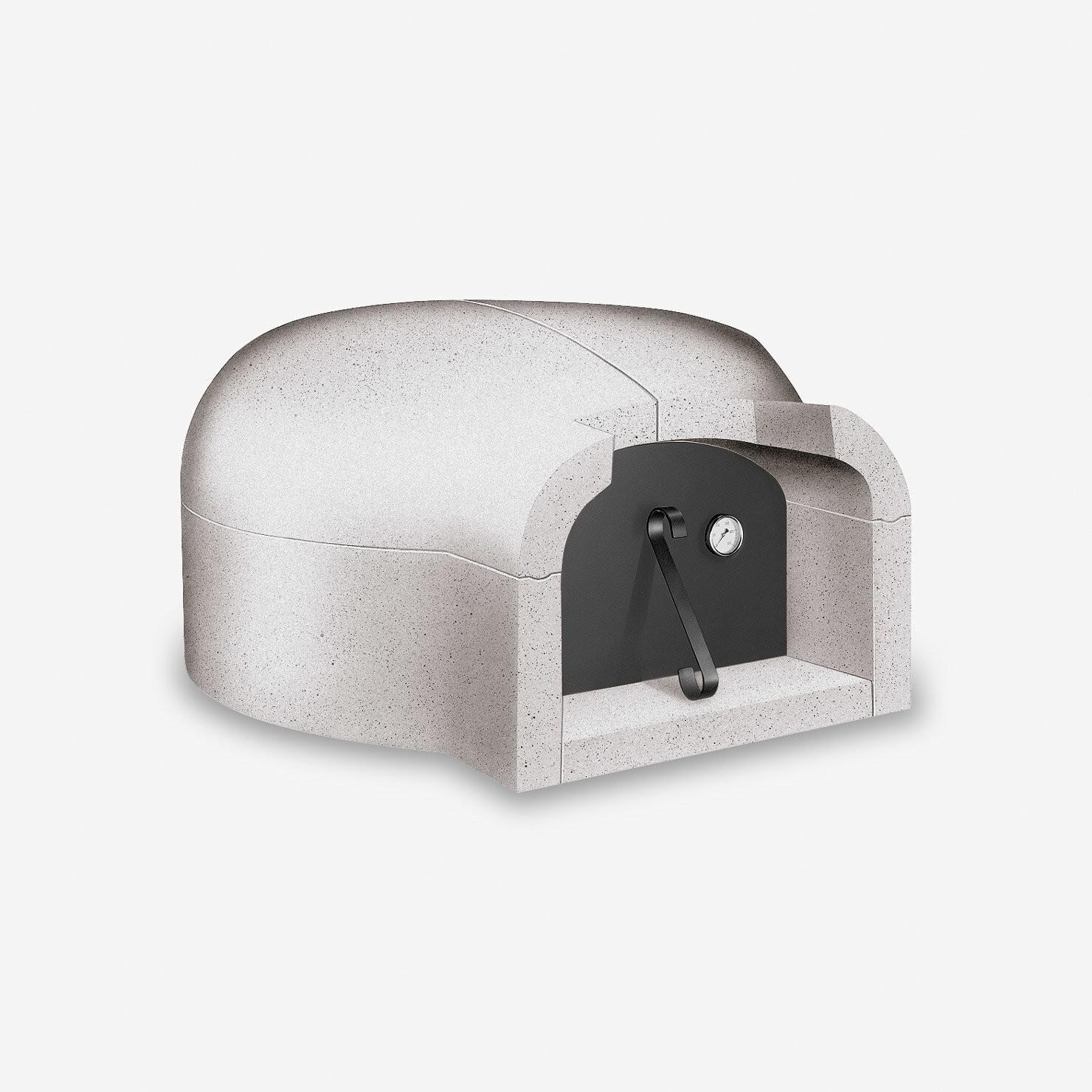 In refractory concrete with a high alumina content. Supplied with a steel door and a Thermometer.