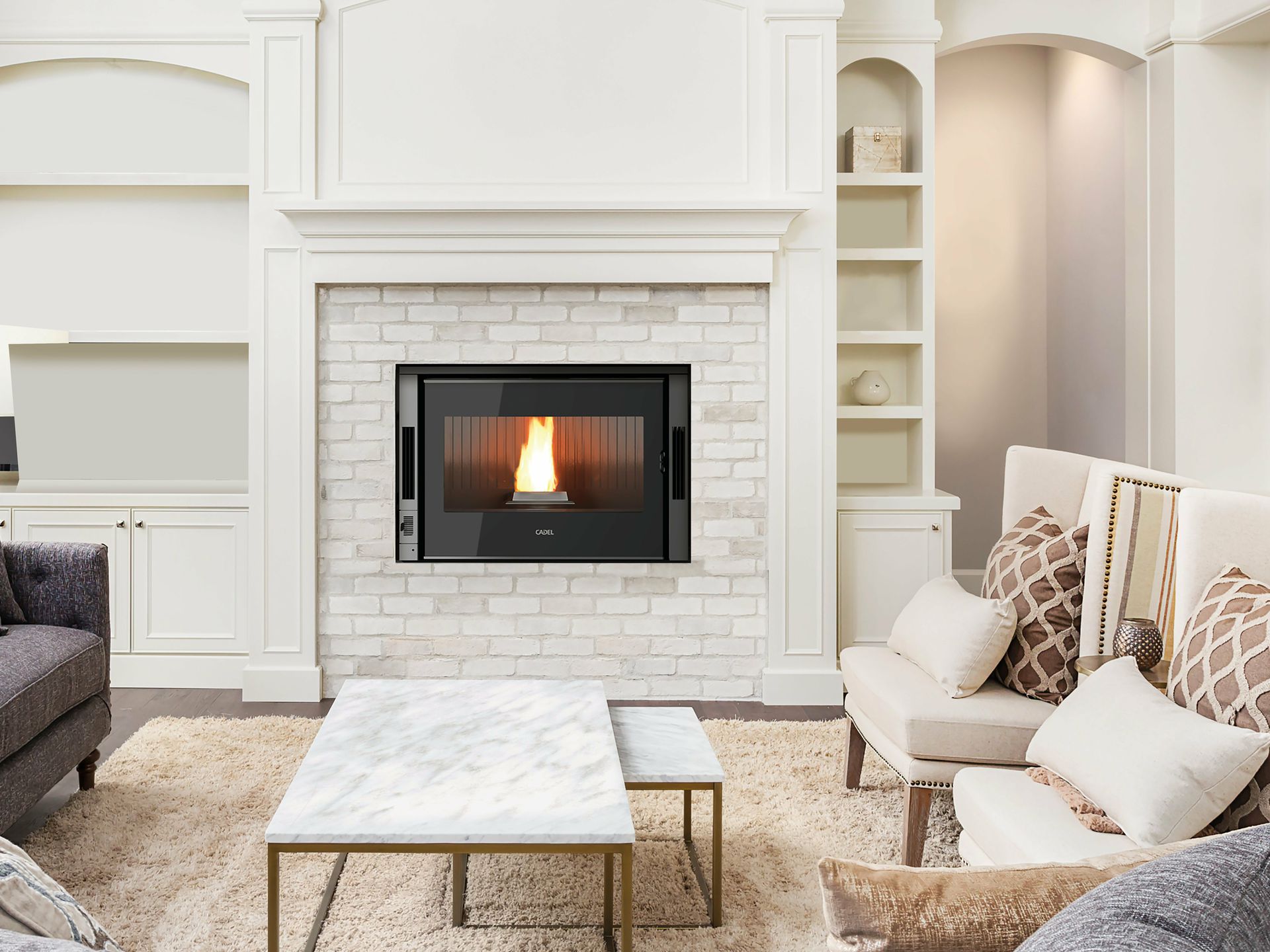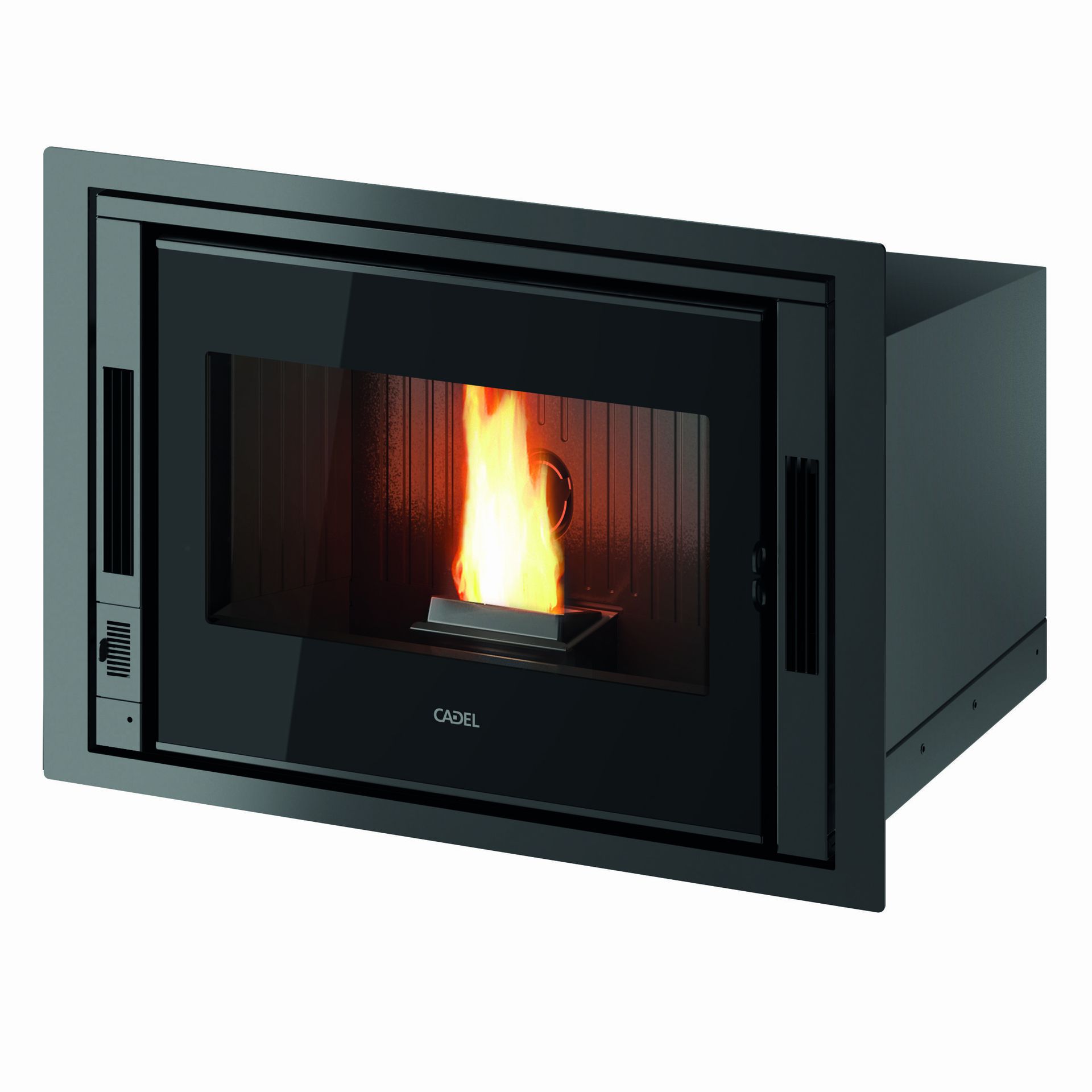 The pellet insert that adapts to your needs and integrates perfectly with open fireplaces. With an optional kit, you can direct the air to warm other rooms in the house. The firebox has a large glass window so you can have a good view of the fire.