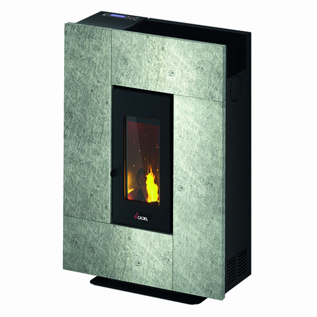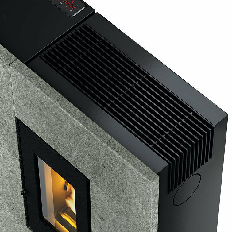 A pellet stove that decorates. The elegant and contemporary design of this unit makes it particularly suitable for small spaces, thanks to a depth of only 27.5 cm.