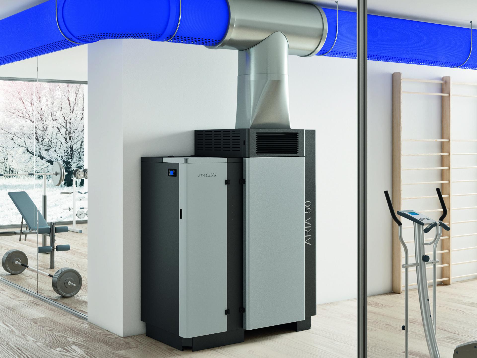 Self-cleaning pellet heater with hot air outlet at the front through the grille or two 20 cm diameter outlets at the top. Can be connected to a duct system for better distribution of hot air over a large area. Removable ash drawer for ash collection in a separate compartment. Unburnt pellet recirculation system ensures high output and low consumption. Large pellet hopper and low maintenance. Double door with detachable handle.