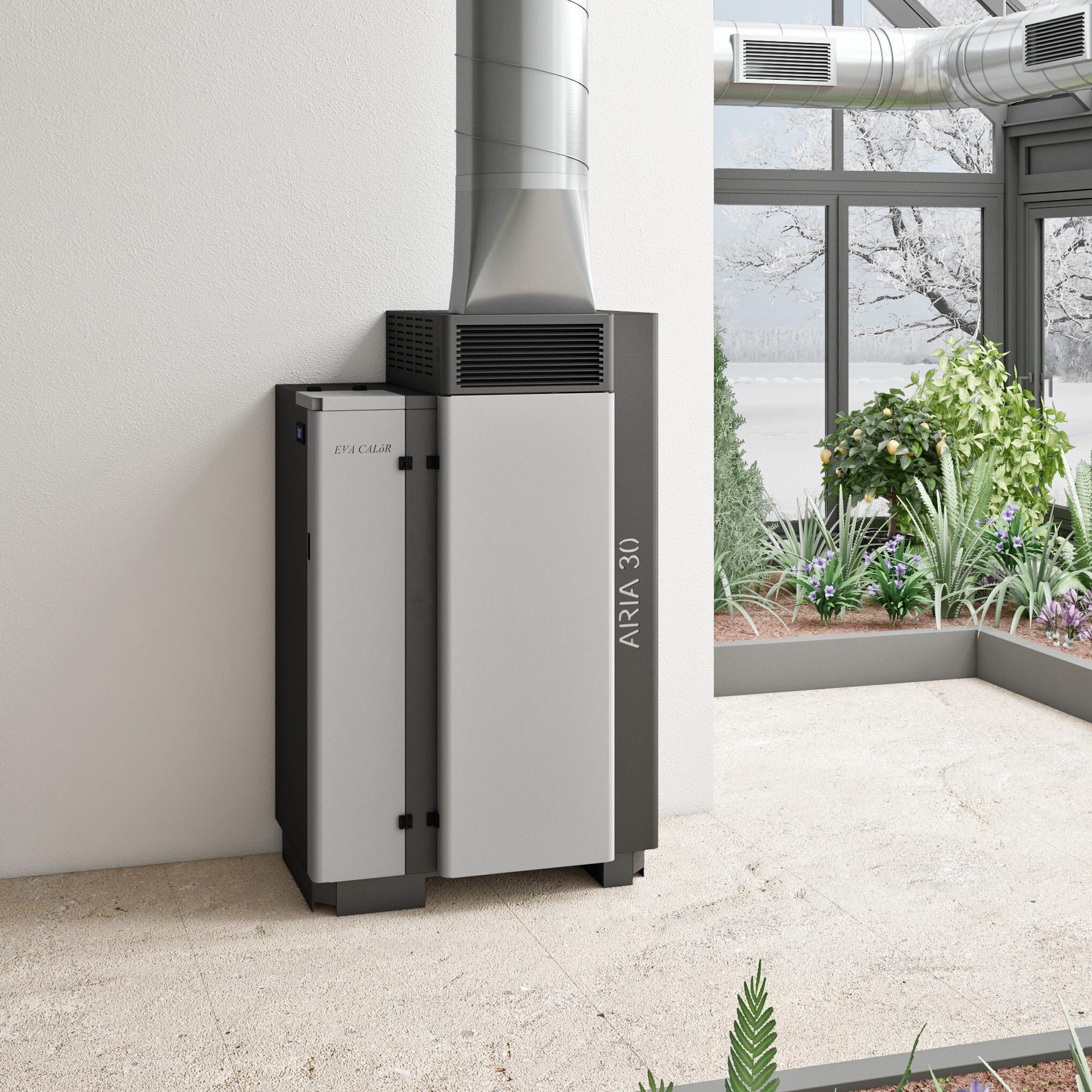 Self-cleaning pellet heater with hot air outlet on the front through the grille or a 20 cm diameter outlet on the top. Possibility of connection to a duct system for better distribution of the hot air over large areas. Removable ash drawer for ash collection in a separate compartment. Unburnt pellet recirculation system ensures high performance and low consumption. Large pellet hopper and low maintenance. Double door with detachable handle.