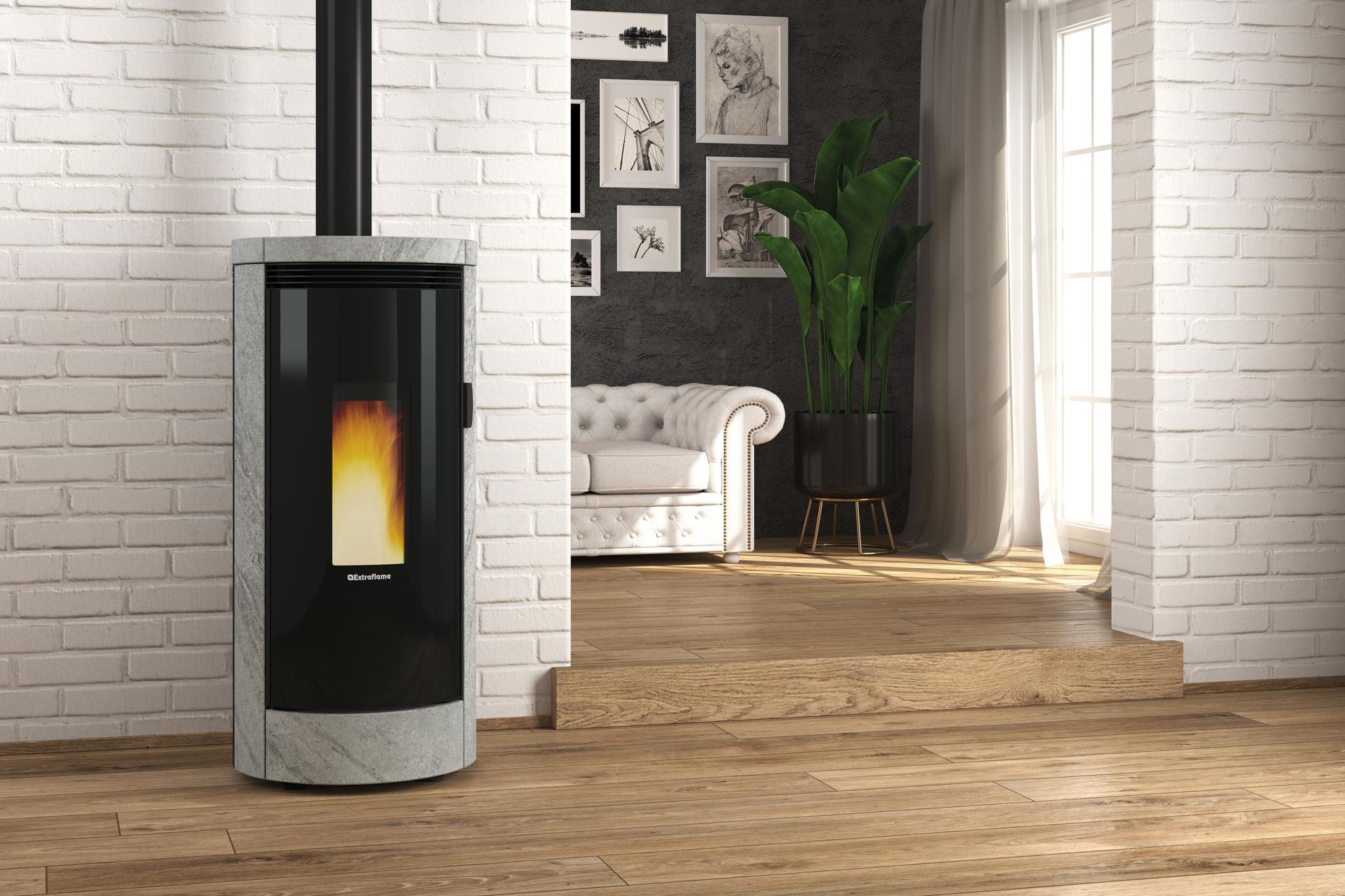 The Debby Plus Evo pellet stove ensures optimal hot air distribution thanks to the integrated Pro Air Setup ambient ventilation.