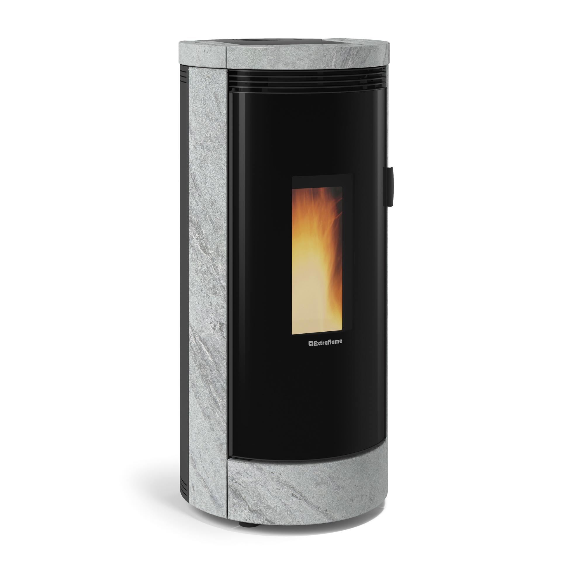 The unique design and curved shape make the stove a perfect element of your interior design, especially the natural stone covering adds a precious classic touch. The fire doors are double, with the outer ones integrating a curved tempered glass.