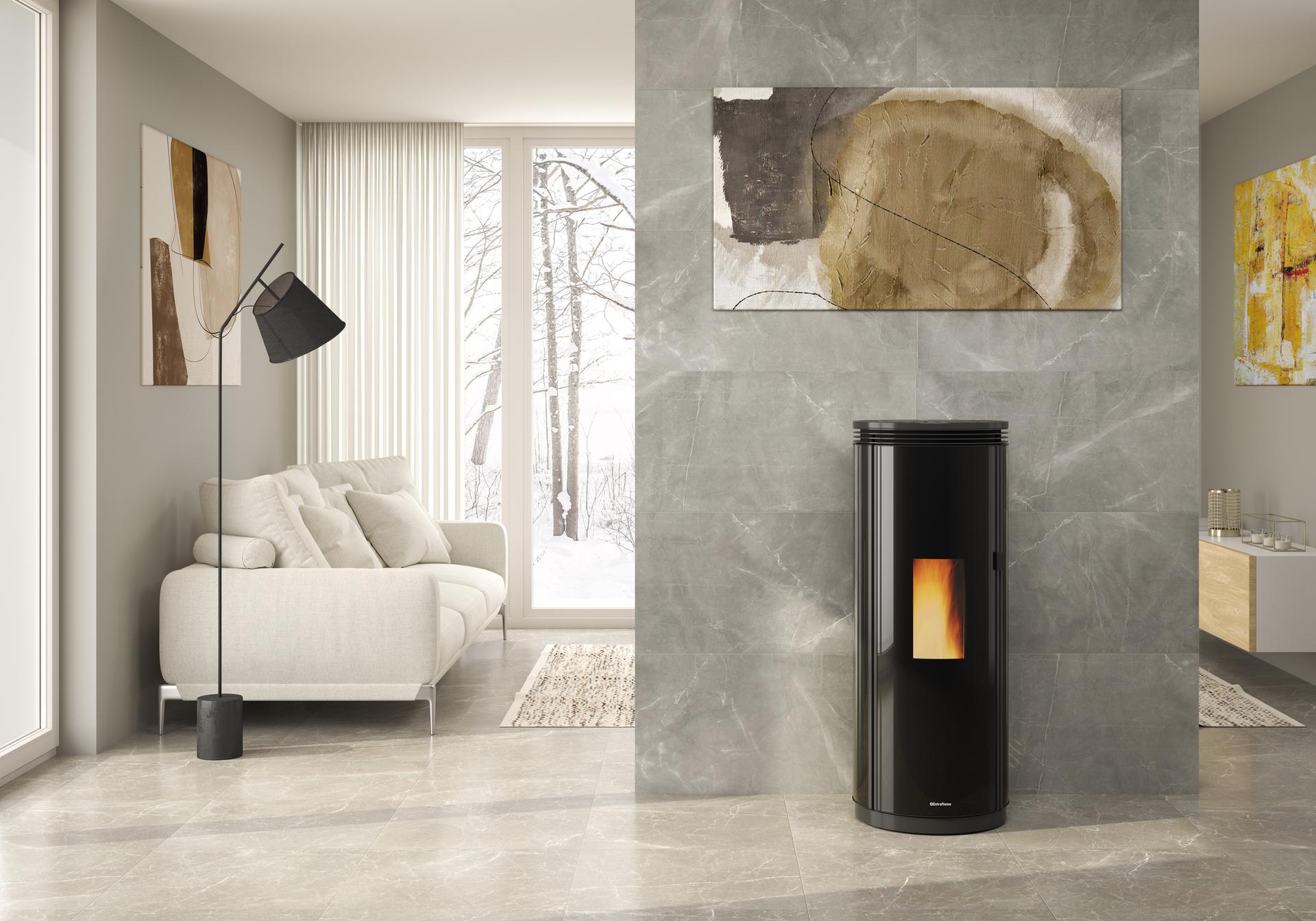 The La Nordica Extraflame Pamela pellet-burning stove integrates a prestigious design with its rounded shape and elegant lines. The temperated glass cladding adds even more elegance making the product a valuable part of your living space. The front doors are double, but the outer one with the curved tempered glass completes the visual perfection.