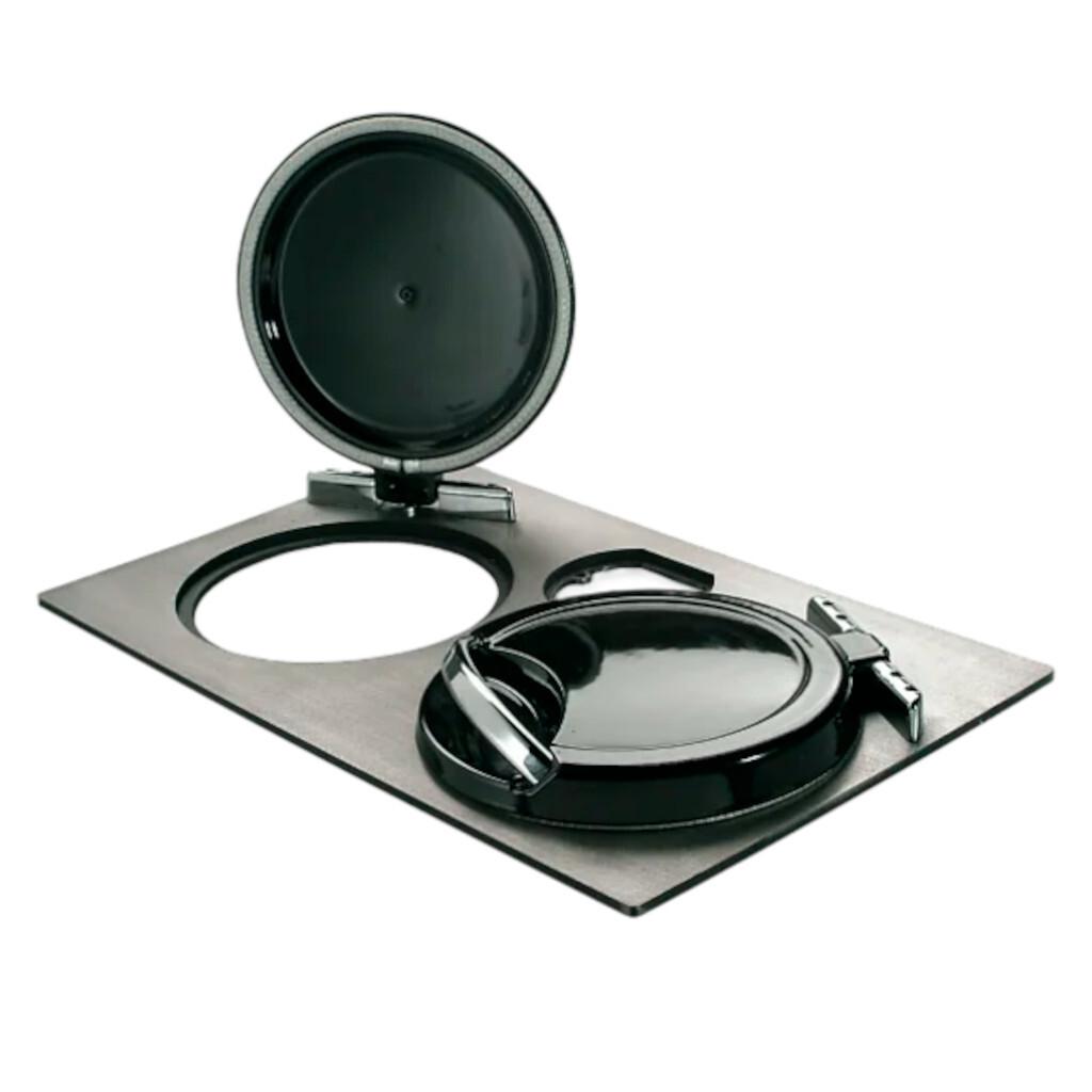 Polished doily kit complete with 2 anthracite glazed cast iron lids.