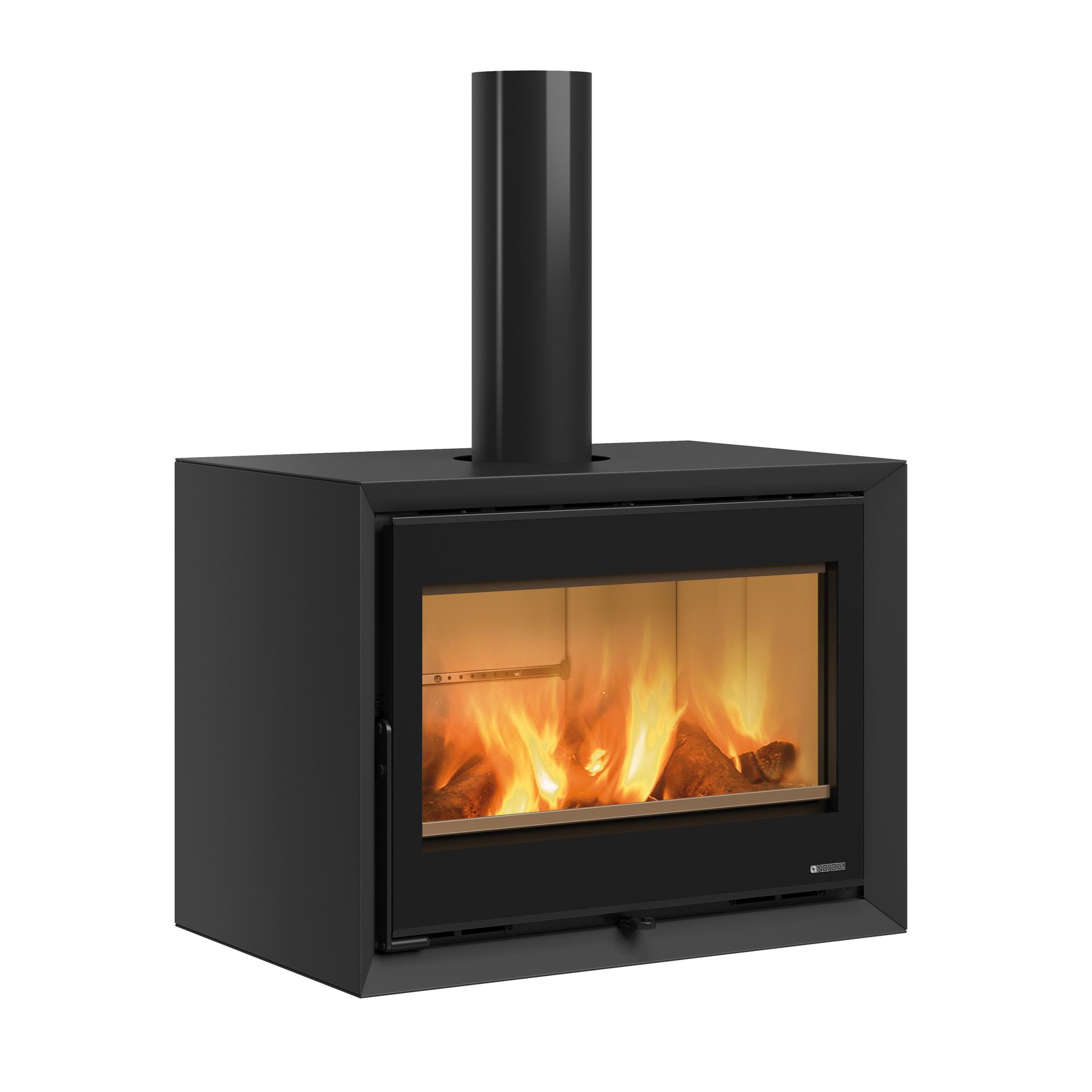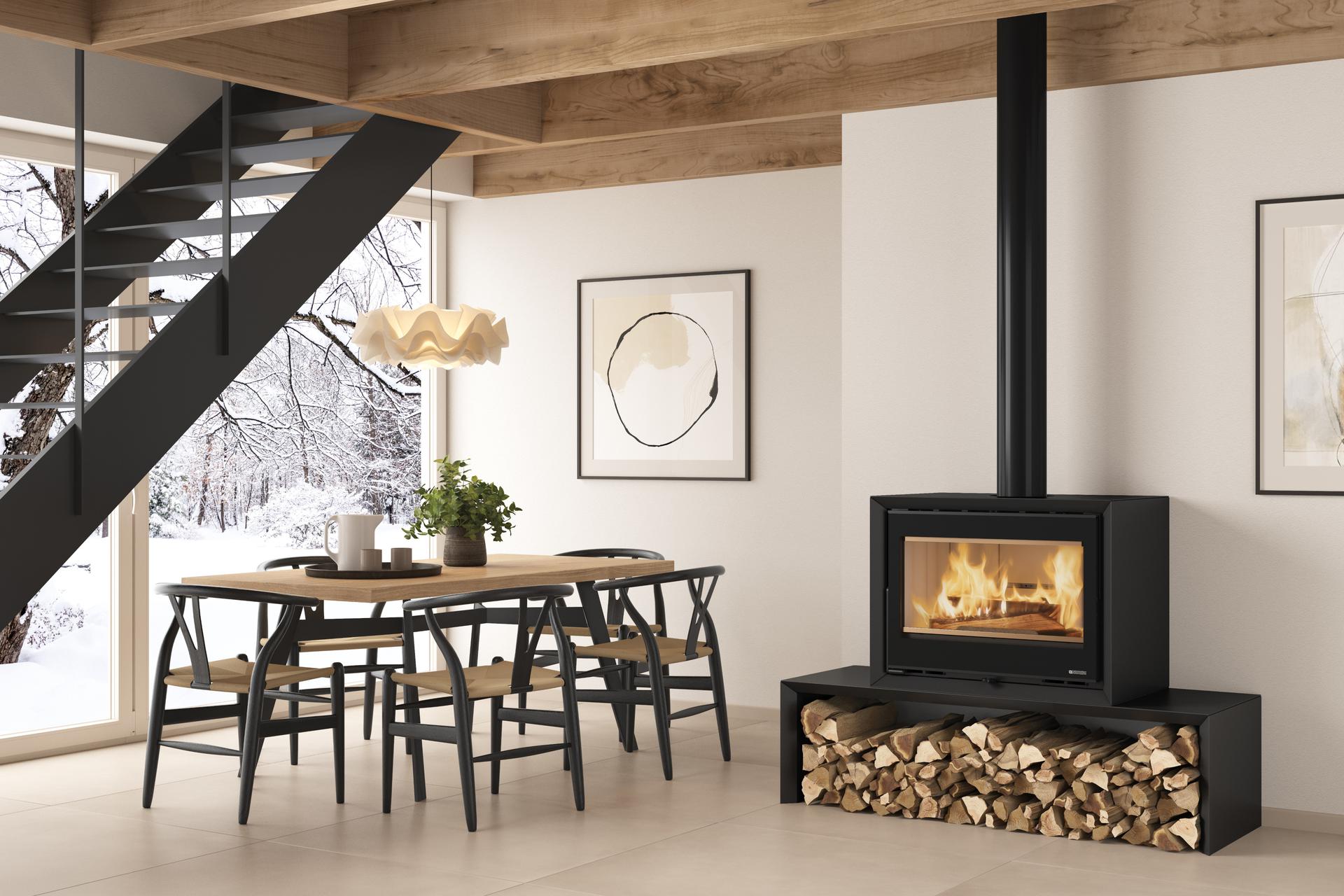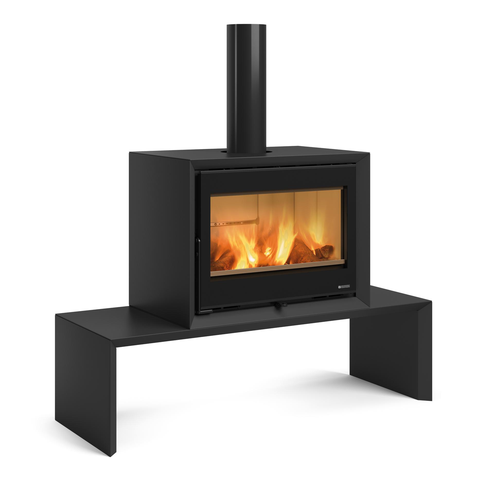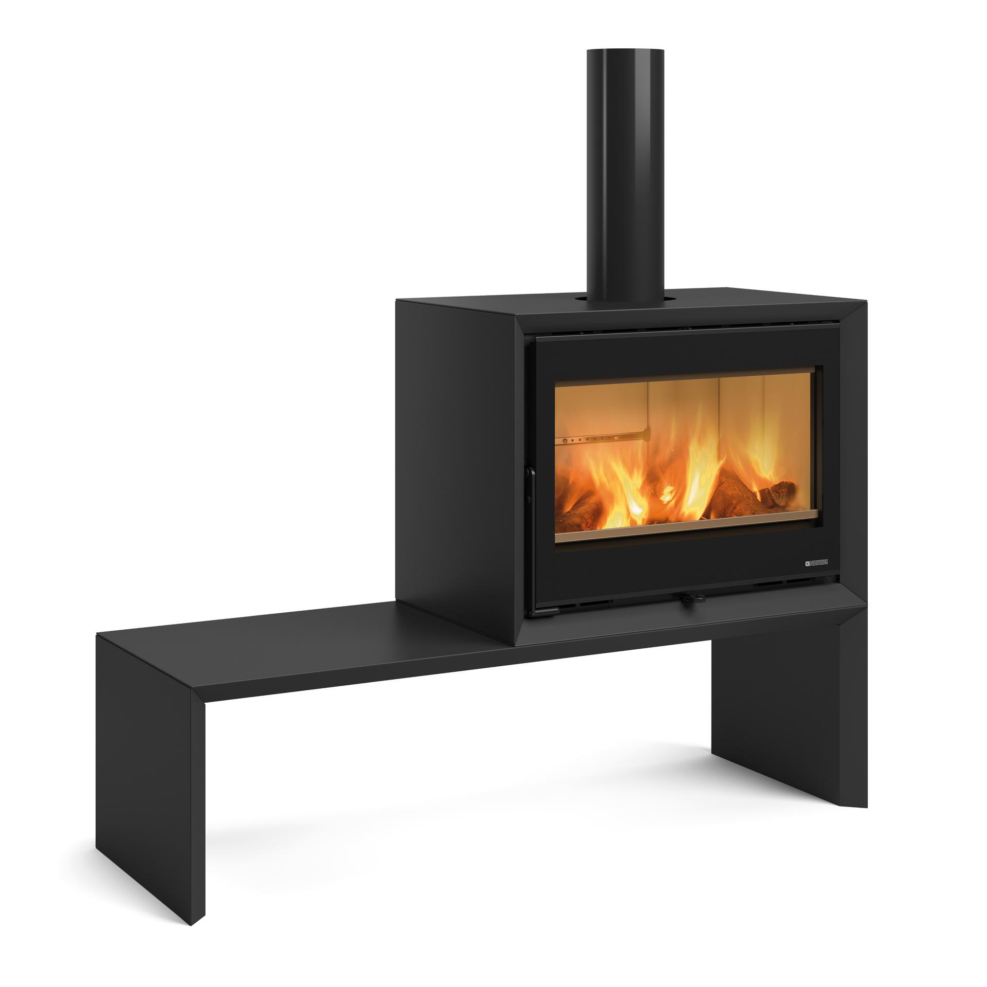 The La Nordica Dante wood-burning stove with heat recovery is a stylish heating solution that can be installed as a freestanding unit or on the optional horizontal bench. The panoramic, reversible fire door and low fire plain ensure a great view of the flames. The door and grate are made of cast iron and the hearth is made of Nordiker.