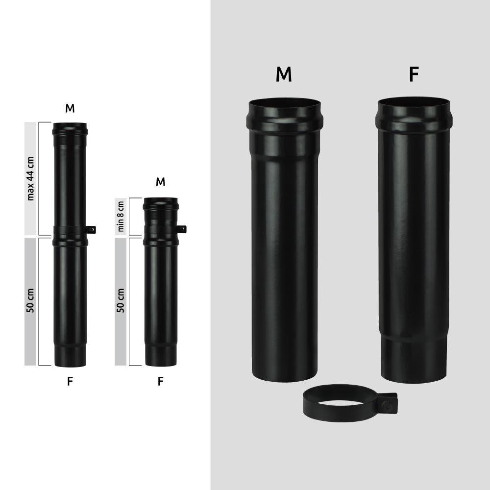 Vitreous enamel telescopic set 100x500 mm black matt Save Pellet Light