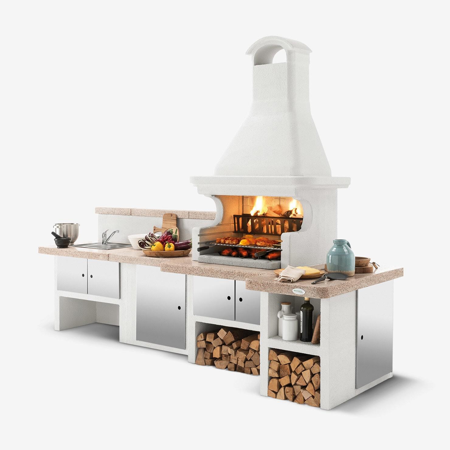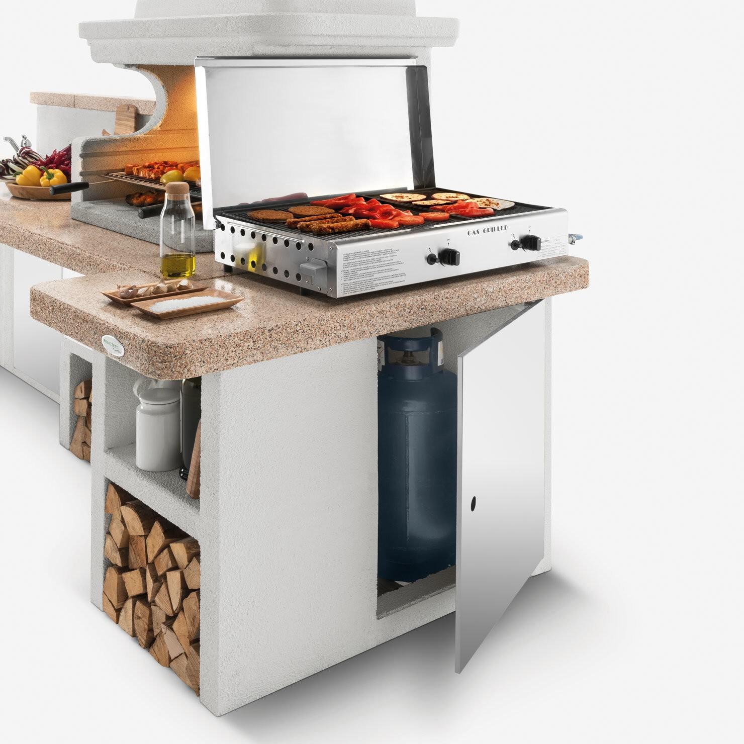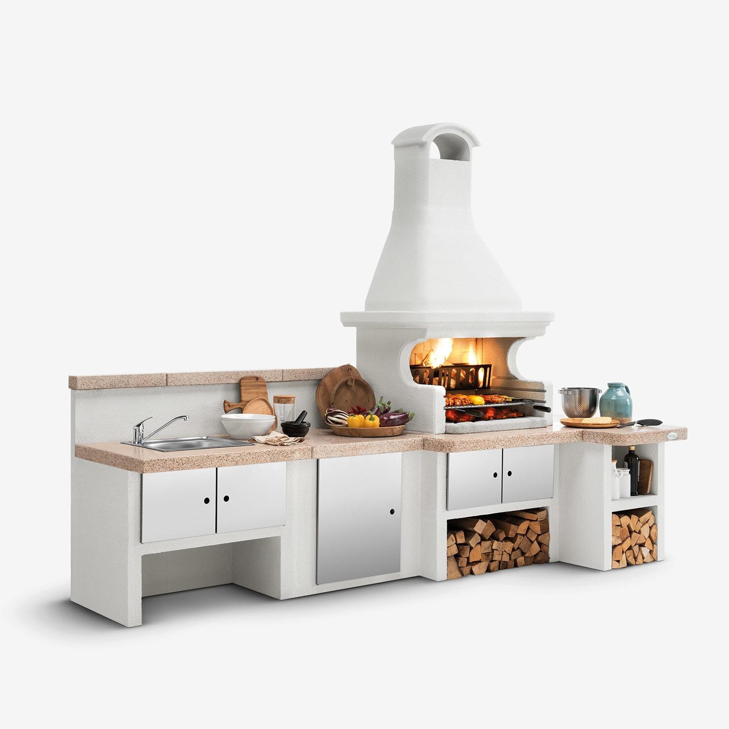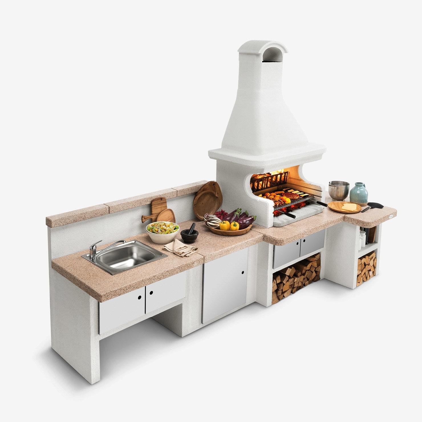 The Gallipoli 4’s structure is made of cement conglomerate, ready to be painted to match your style and surrounding environment. Convenient storage compartments with optional doors (not included) offer additional space to organize utensils and accessories during meal preparation.