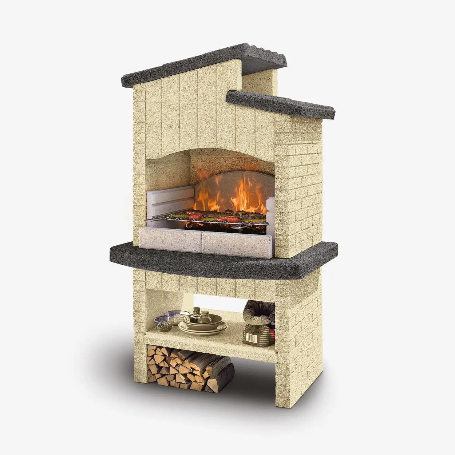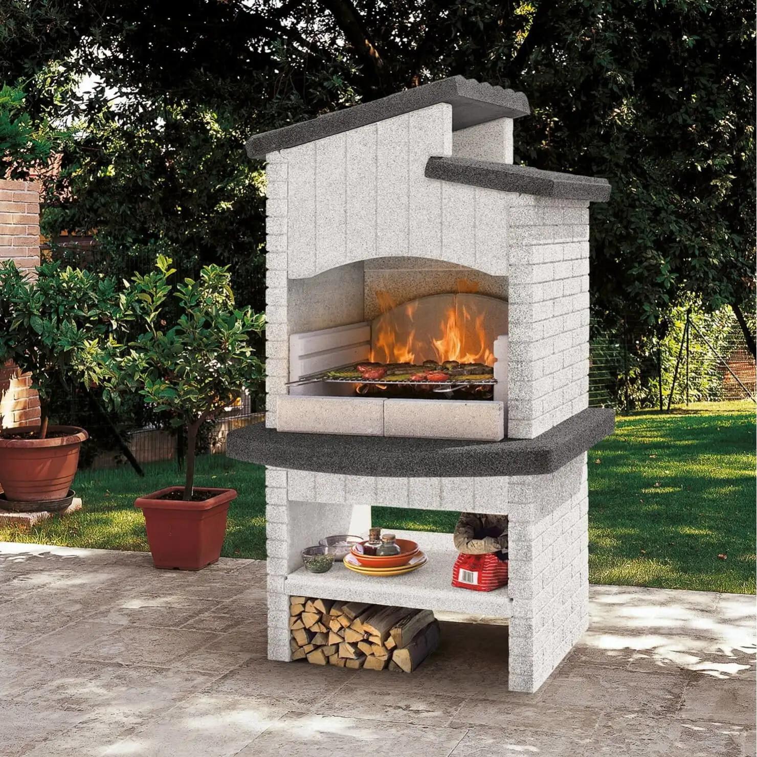 Superb designer barbecue made entirely of marmotech. Its solid, resistant structure will ensure a long life. The barbecue's shelves are ideal for storing logs and utensils. Quality barbecue.