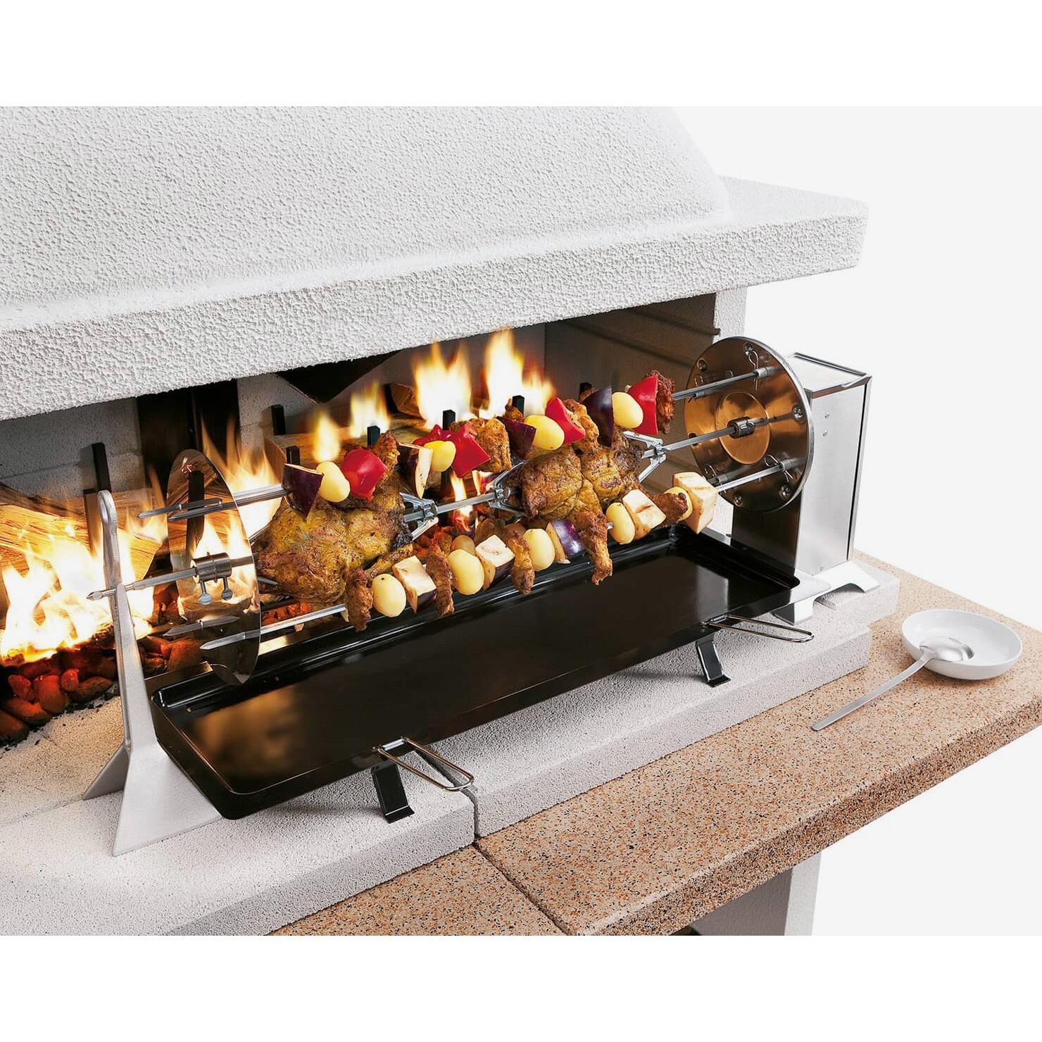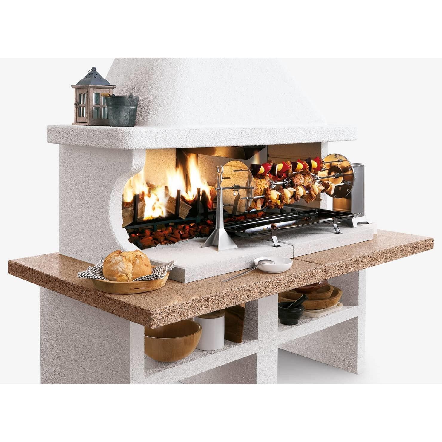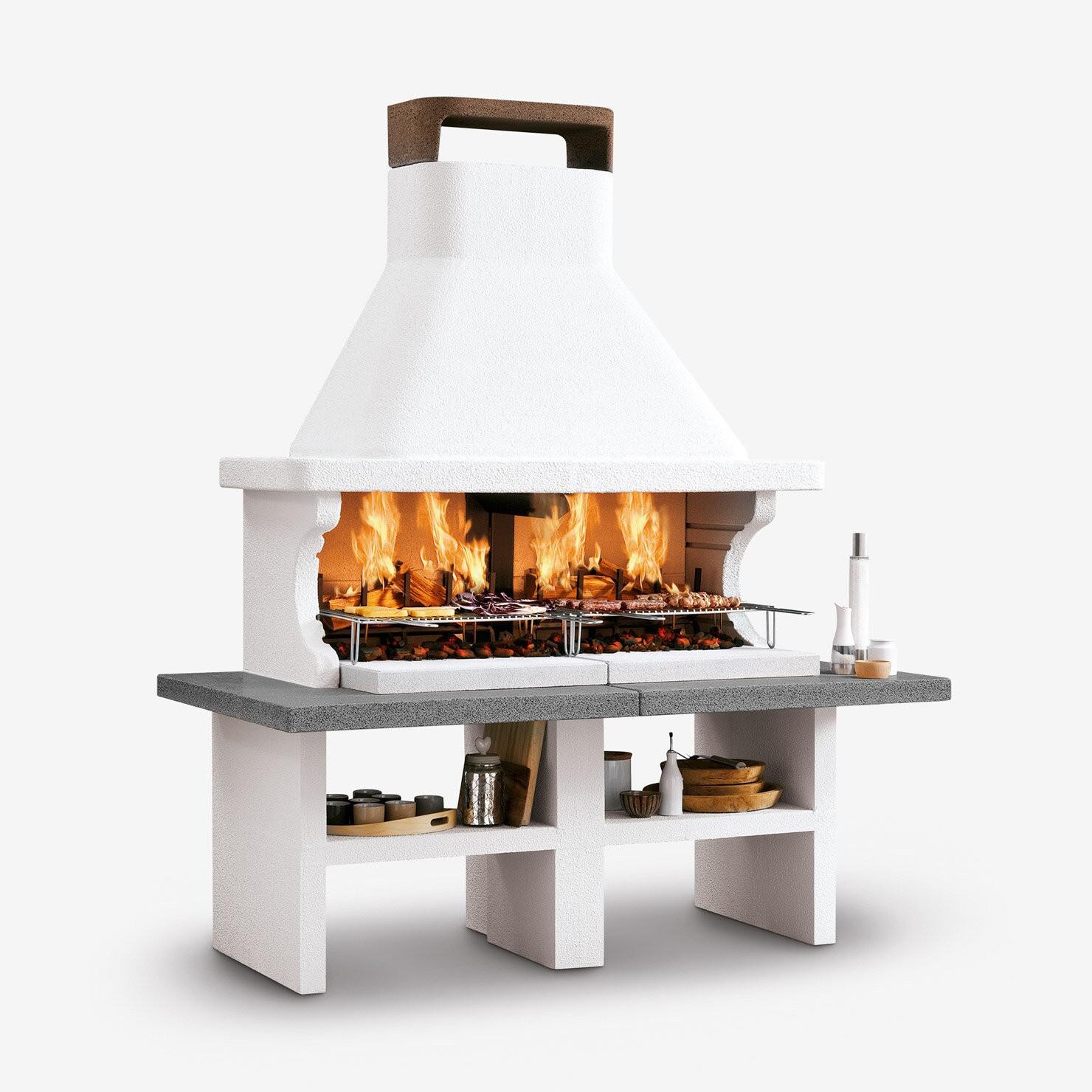 Do you love grilling in your backyard? The permanent Patmos garden grill from Palazzetti might be just what you need. This model features an elegant cladding of Marmotech, offering space for two standard grill racks (60x40 cm) with legs. The generous cooking surface lets you prepare meat, vegetables, fish, and more for family and guests.