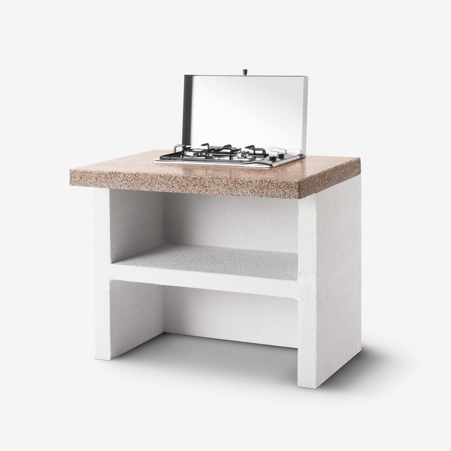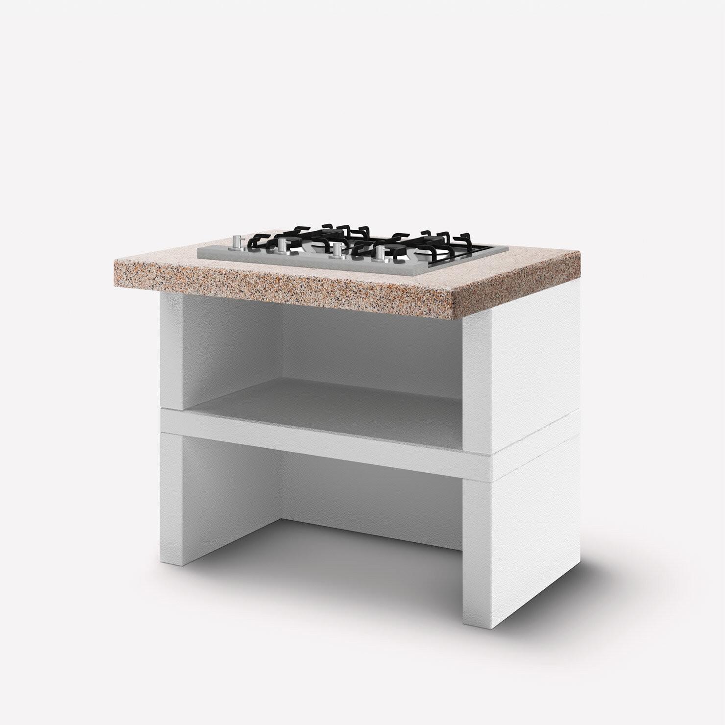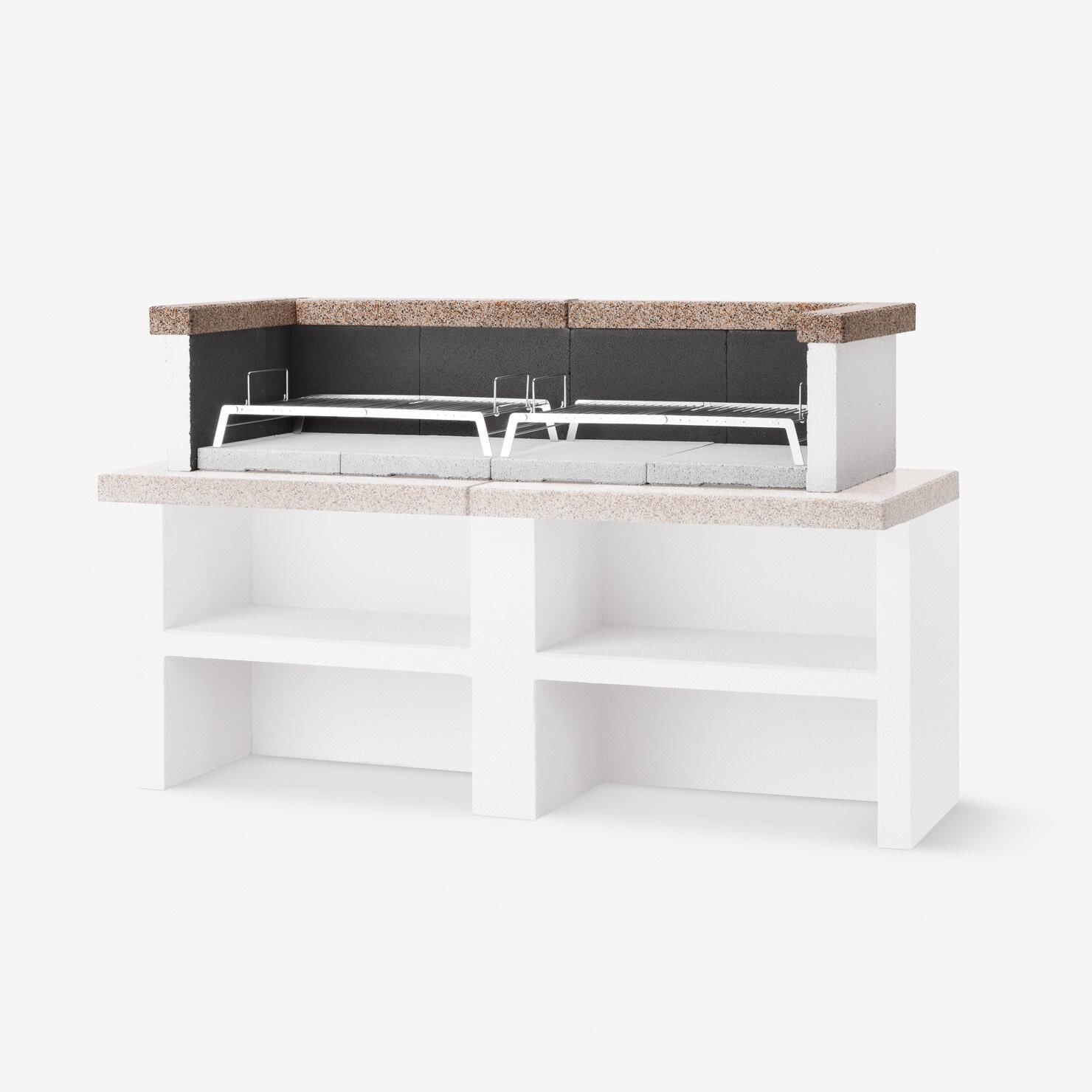 Crafted from high-quality materials, the Patmos includes a durable steel fire basket and a refractory clay firebox. The work surface features Marmotech with a polished granite finish, combining robustness with appealing aesthetics.