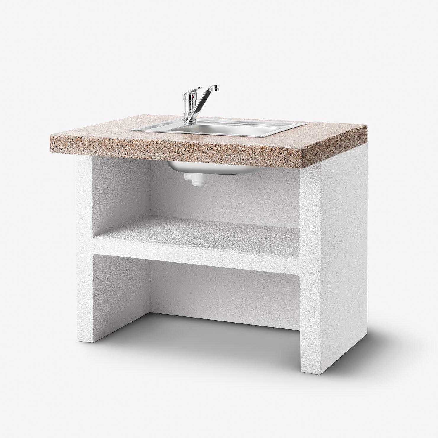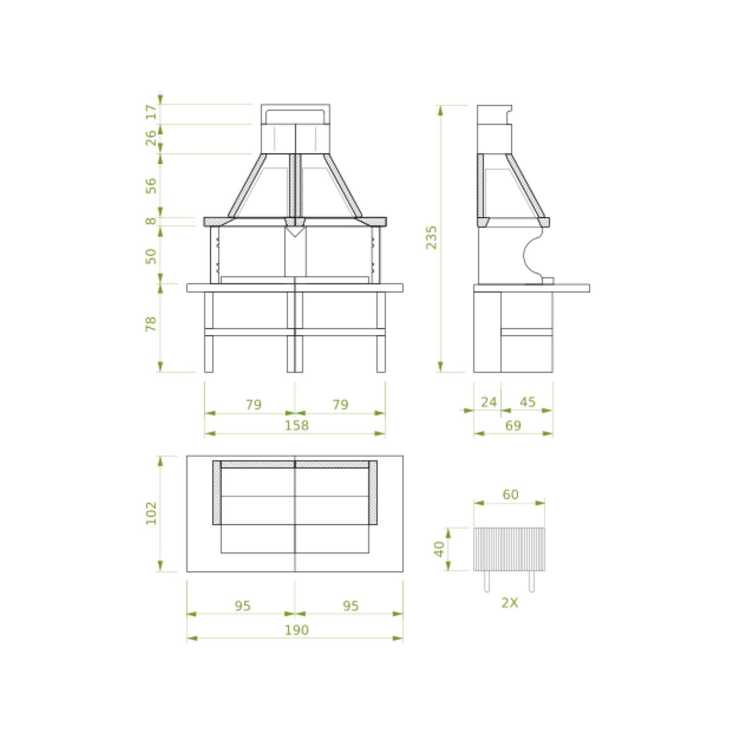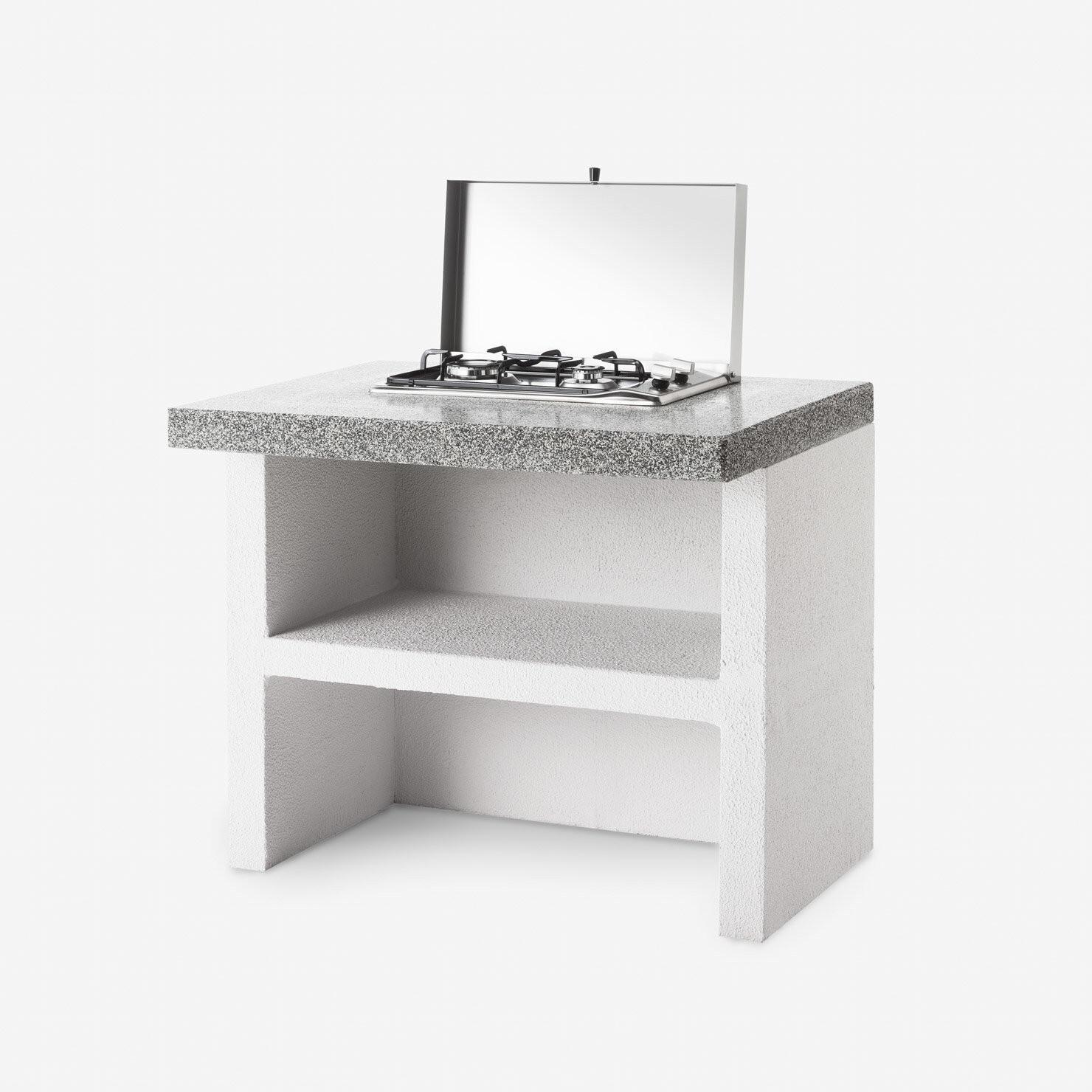 Crafted from high-quality materials, the Patmos includes a durable steel fire basket and a refractory clay firebox. The work surface features Marmotech with a polished granite finish, combining robustness with appealing aesthetics.