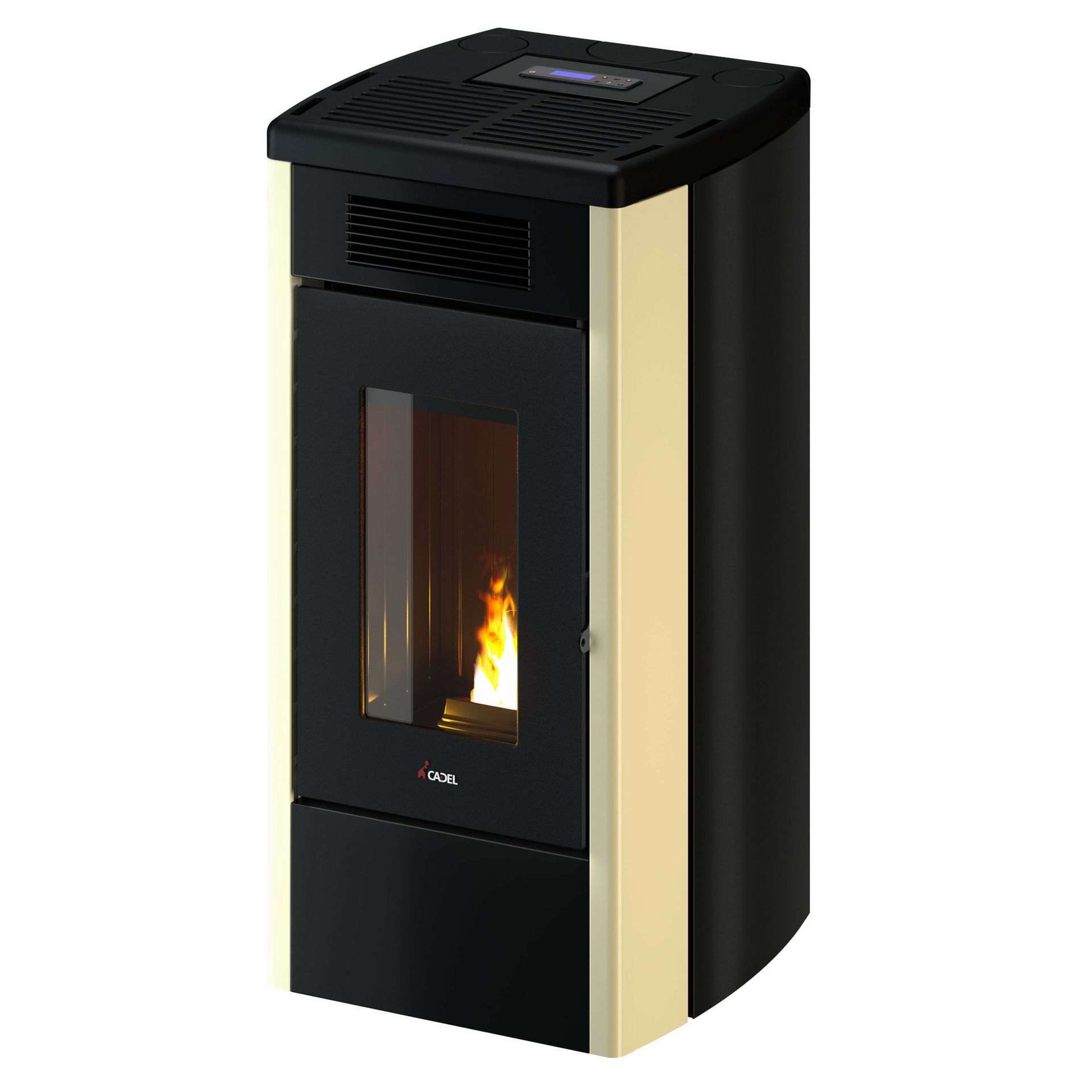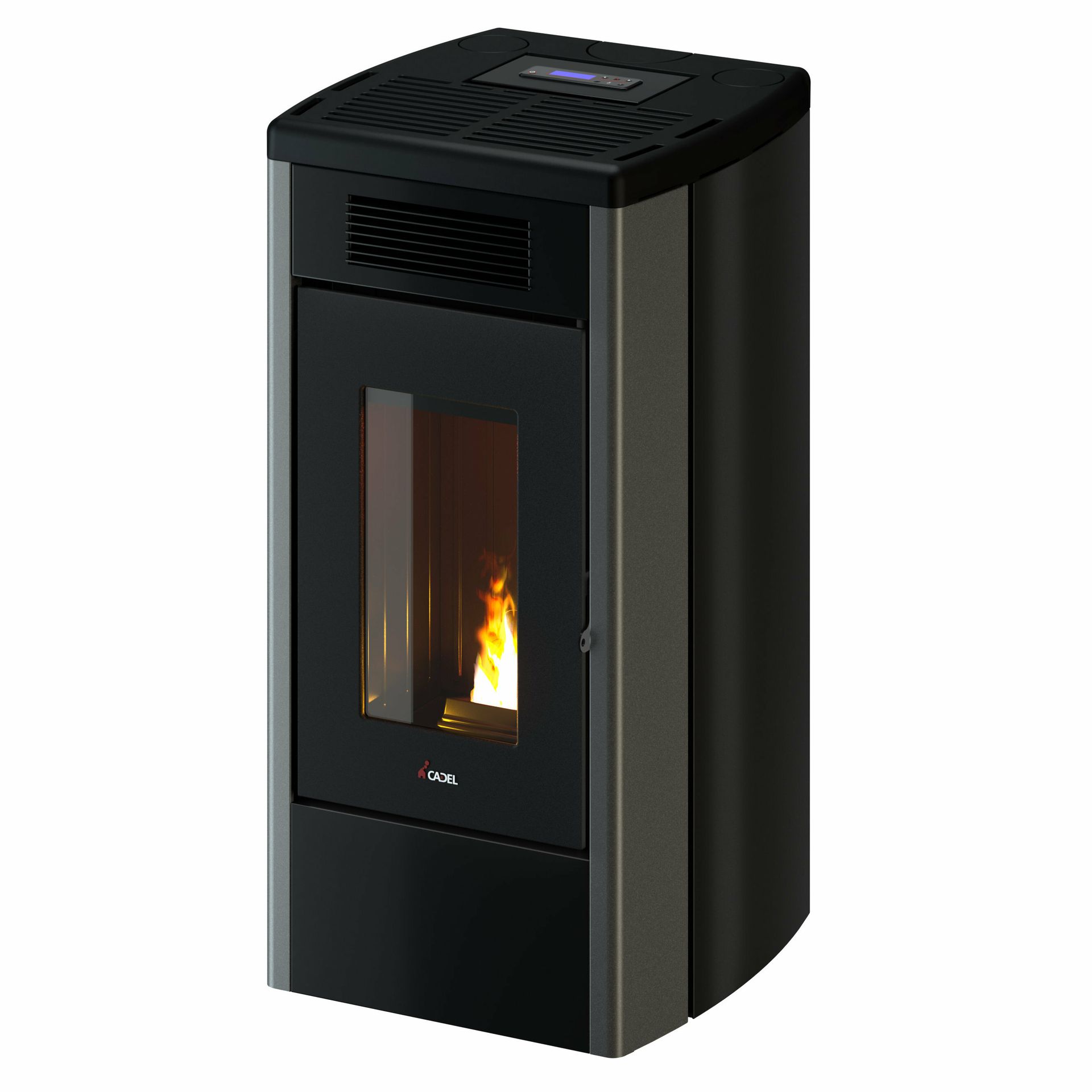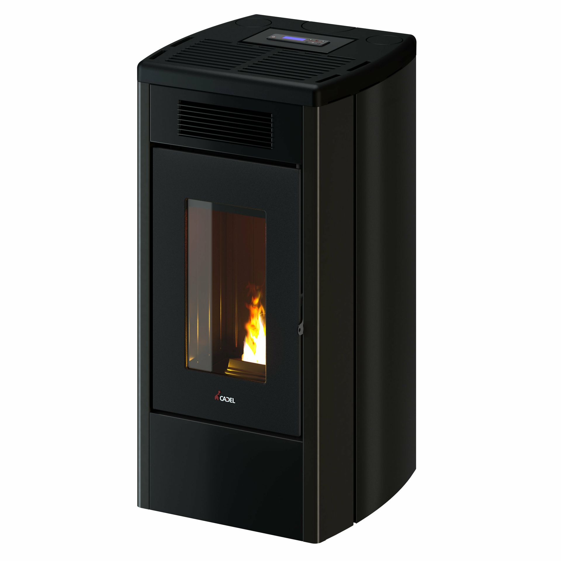 Sealed pellet stove with double ducting managed independently. Burning pot, cast iron top and door. With built-in Wi-Fi for remote control. Versatile, can be installed with top or rear smoke outlet.