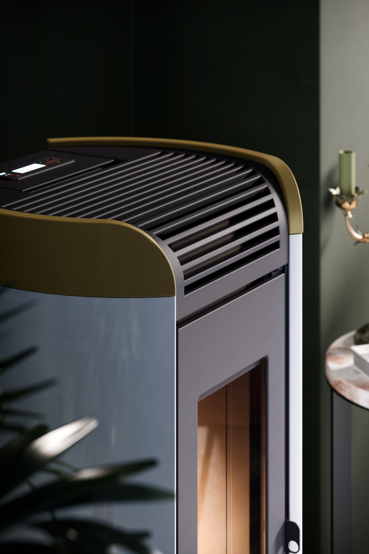 A new round design with innovative lines. The top and ventilation grille blend in perfectly with the front section. The smooth decorative fitting, available in three different finishes, combined with 5-star environmental certification, Flexit technology and the GoFast ignition system, make it one of the most outstanding products in the entire range. The Plus version is ductable up to 6 metres.