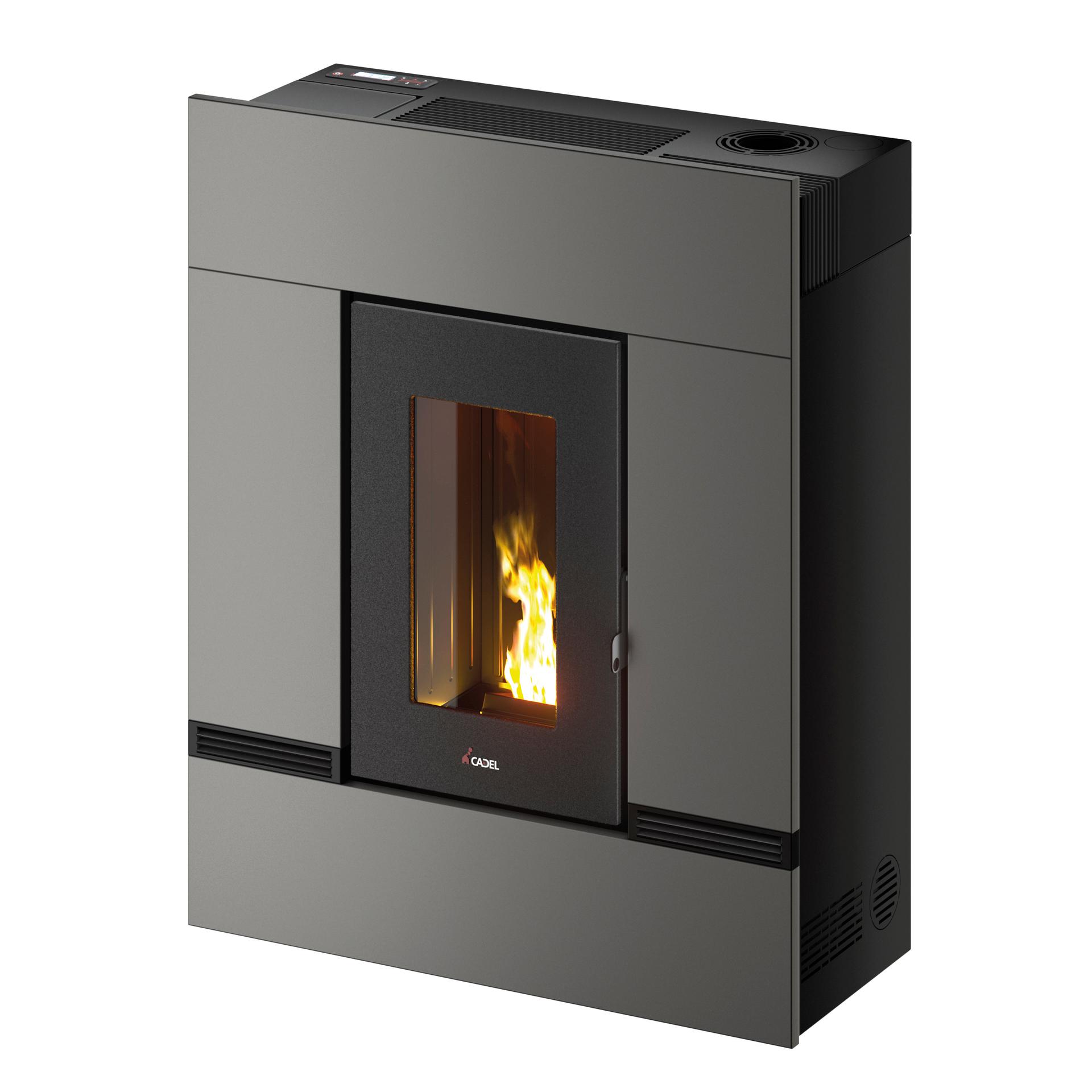 This ductable stove with multiple installation solutions features a minimalist design and reduced depth. The two lower ventilation grilles ensure better air distribution throughout the house. Painted steel casing.