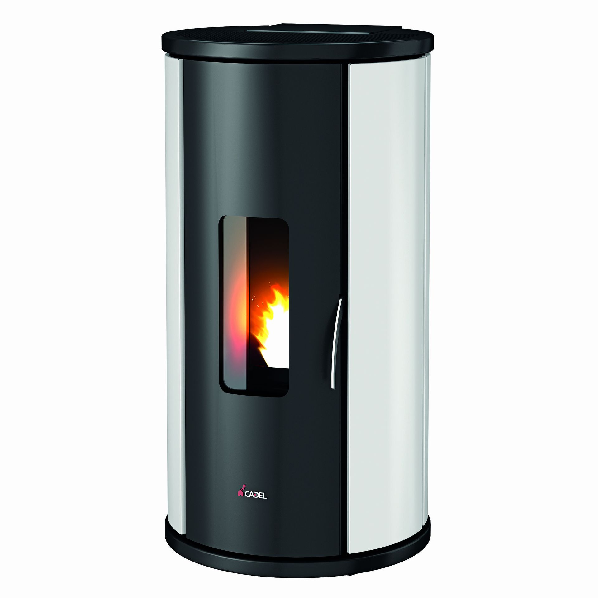 A pellet stove with a basic design and a cylindrical shape that also allows it to be installed in a corner. By channelling the hot air it can heat several rooms in the home simultaneously.