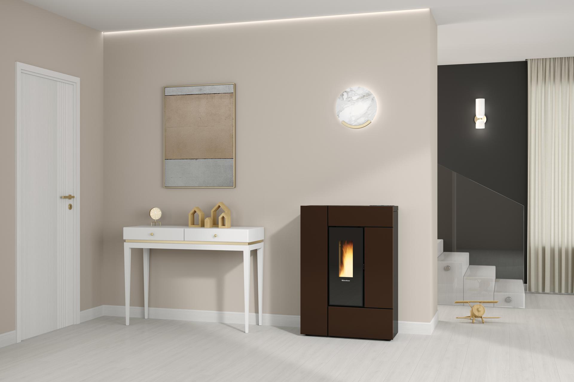 Compact and elegant stove that can be installed in narrow spaces, also considering the choice of smoke outlet connections on the back or on the top. The hermetic design ensures greater safety and performance.