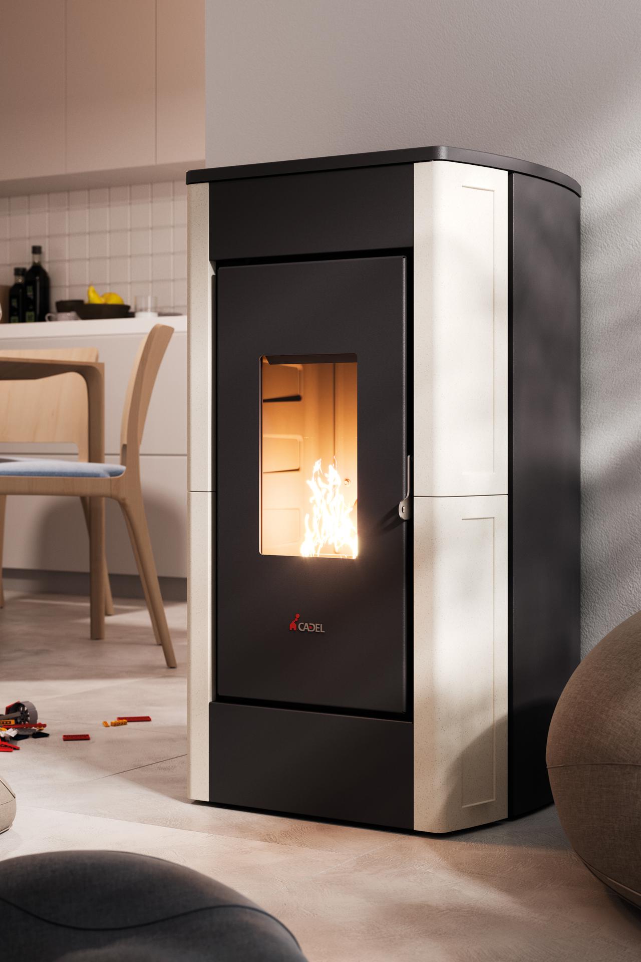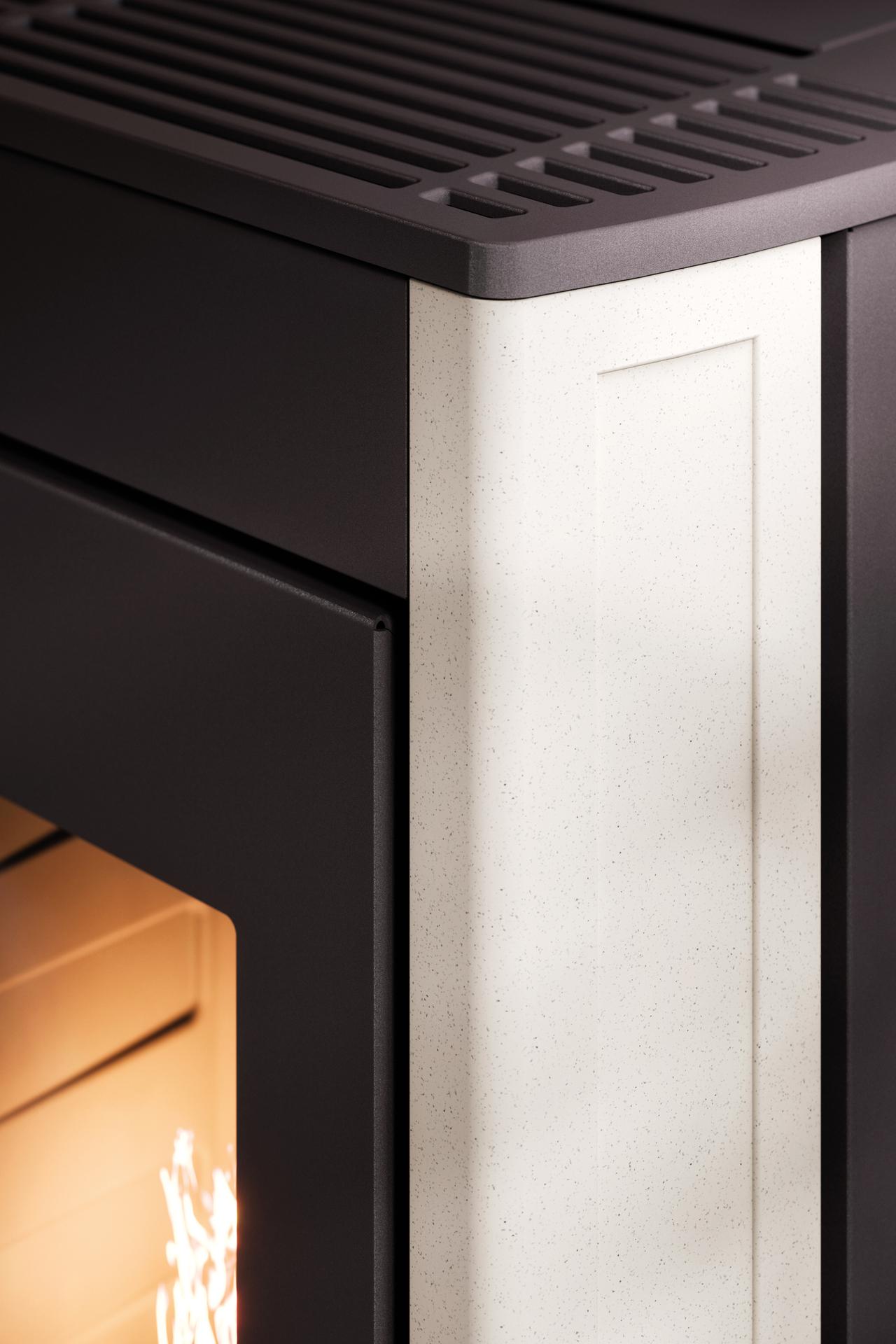 The Cadel Perla pellet stove has been given a new look, with new finishes for the steel sides and new shapes for the cast iron top, as well as the addition of an innovative stove. The sealed chamber is standard. The cover is in painted steel.