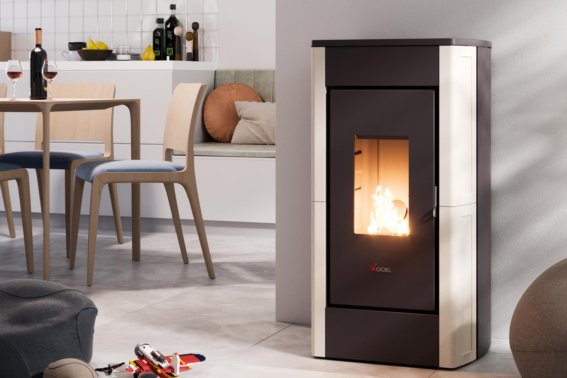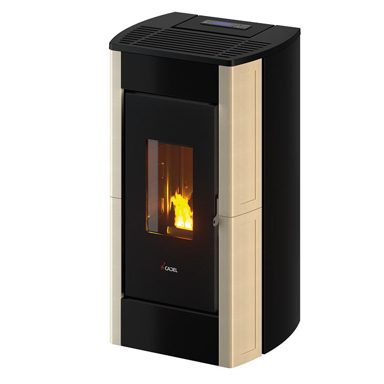 The Cadel Perla pellet stove has been given a new look, with new finishes for the steel sides and new shapes for the cast iron top, as well as the addition of an innovative stove. The sealed chamber is standard. The cover is in painted steel with ceramic sides.