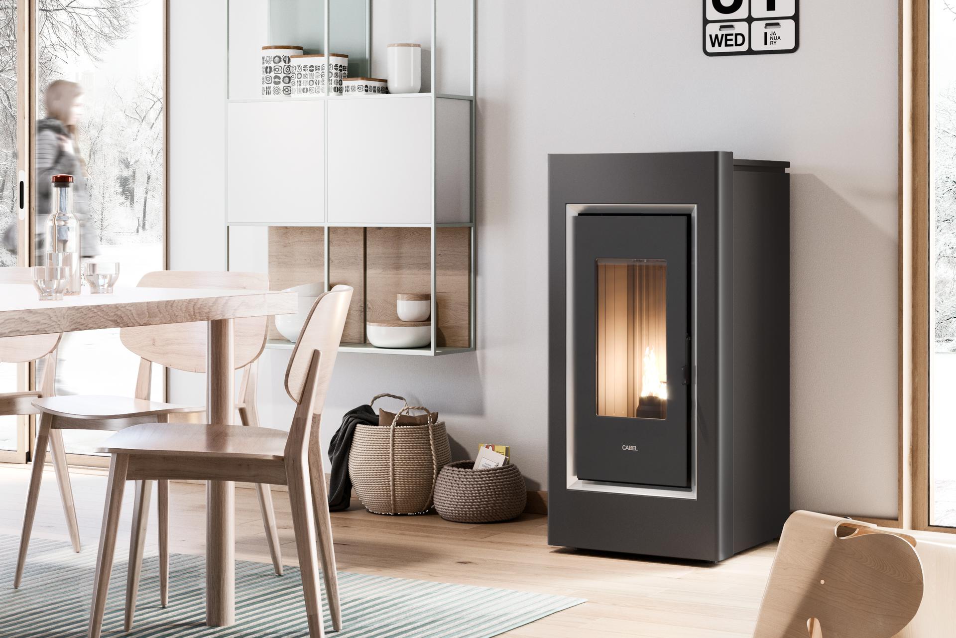 One of Cadel's bestsellers, it has a silent engine and a simple design, embellished with an elegant two-tone frame. The new version has been updated with a 5-star combustion chamber and Flexit technology for greater versatility in smoke emission. The cover is in painted steel.