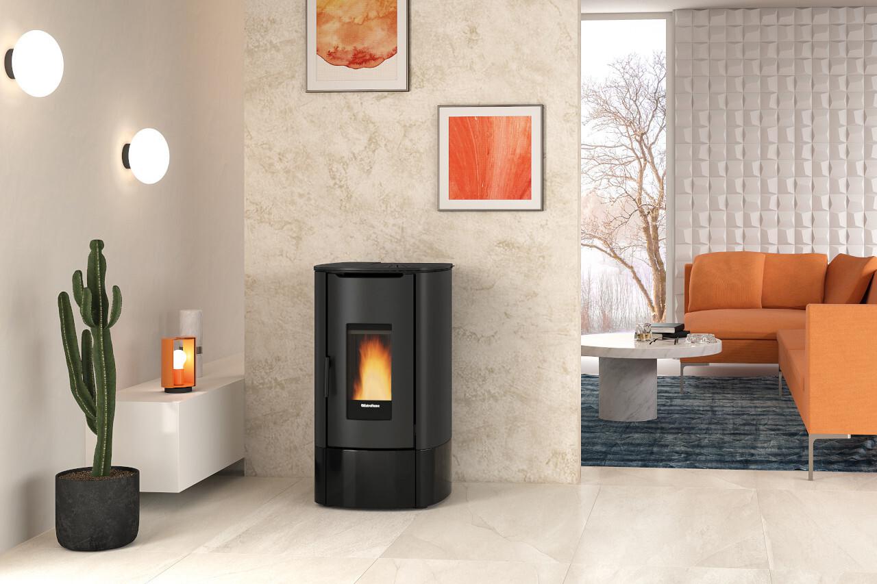 The stove integrates the built-in Wi-Fi and can be managed with home automation Alexa. The remote control with thermostat is standard.