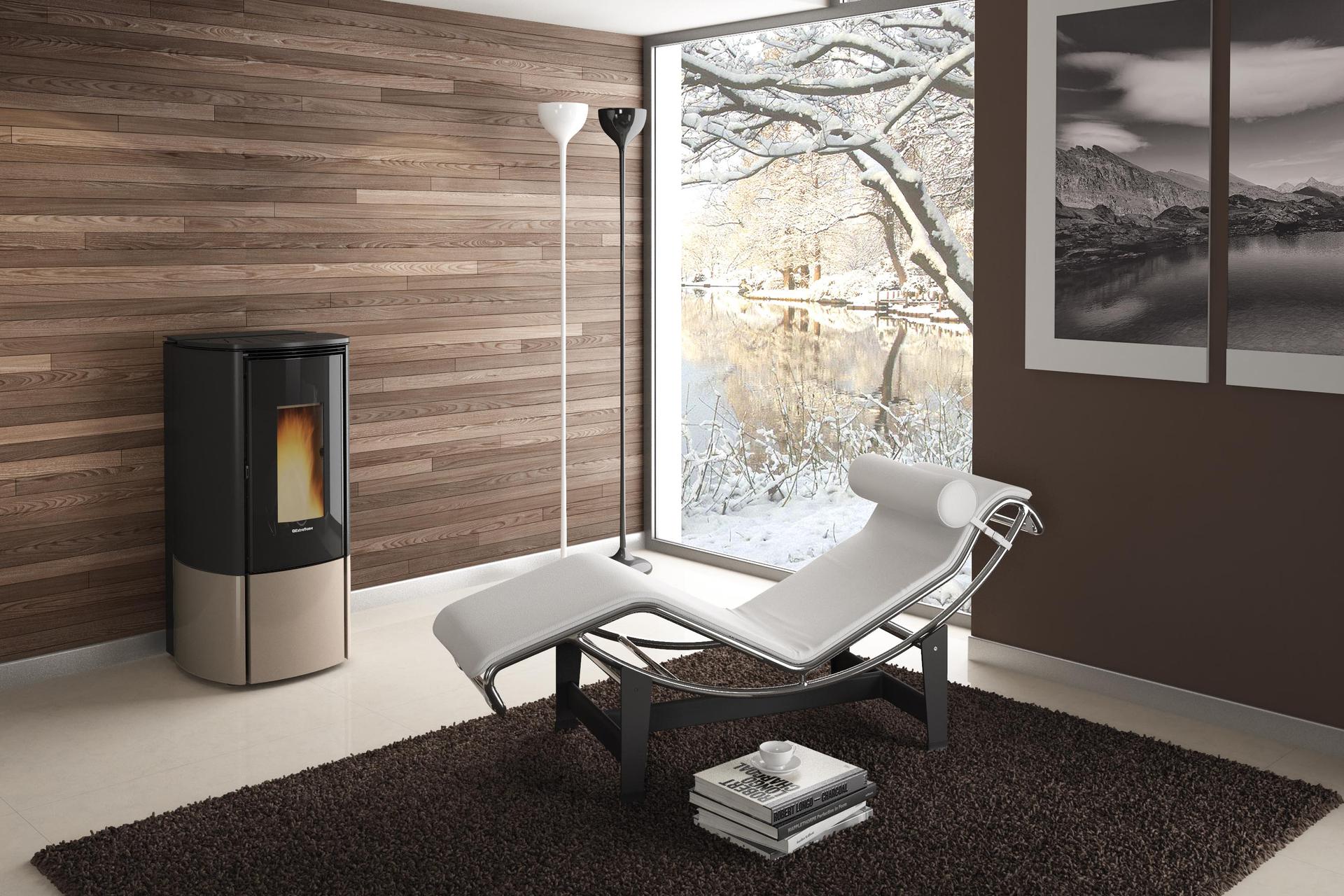Elegant, rounded pellet stove that provides comfortable and efficient heating. The front ventilation includes Pro Air Setup option and can be excluded. The automatic function maintains the desired room temperature. The stove can easily heat also larger spaces, especially it they are opened.