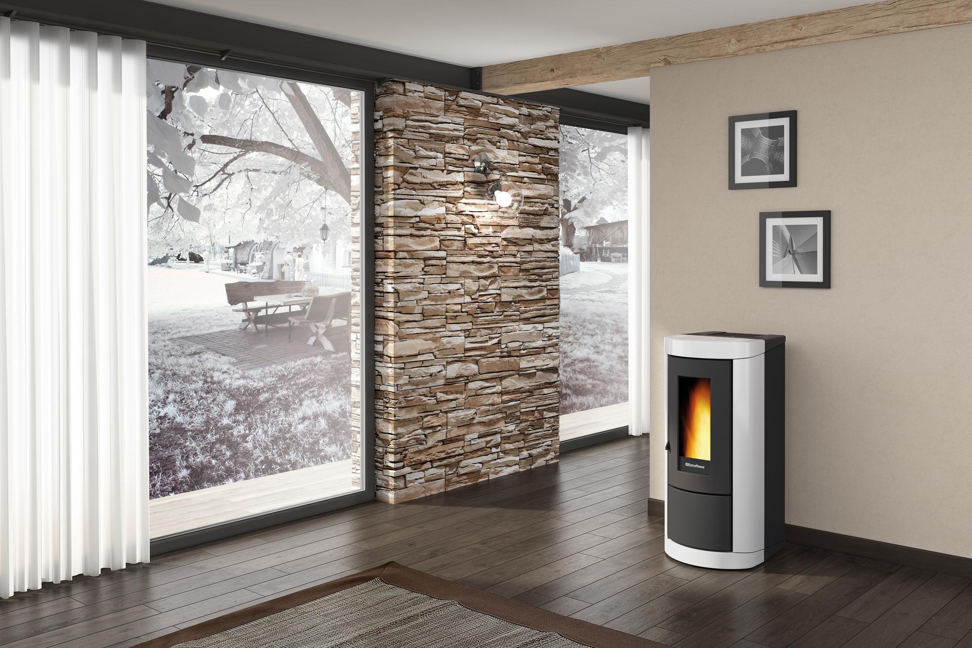 The pellet stove Mietta Evo adds even more usability in a complete comfort with the self-cleaning brazier. The shell and tube exchanger ensures high heating performance.