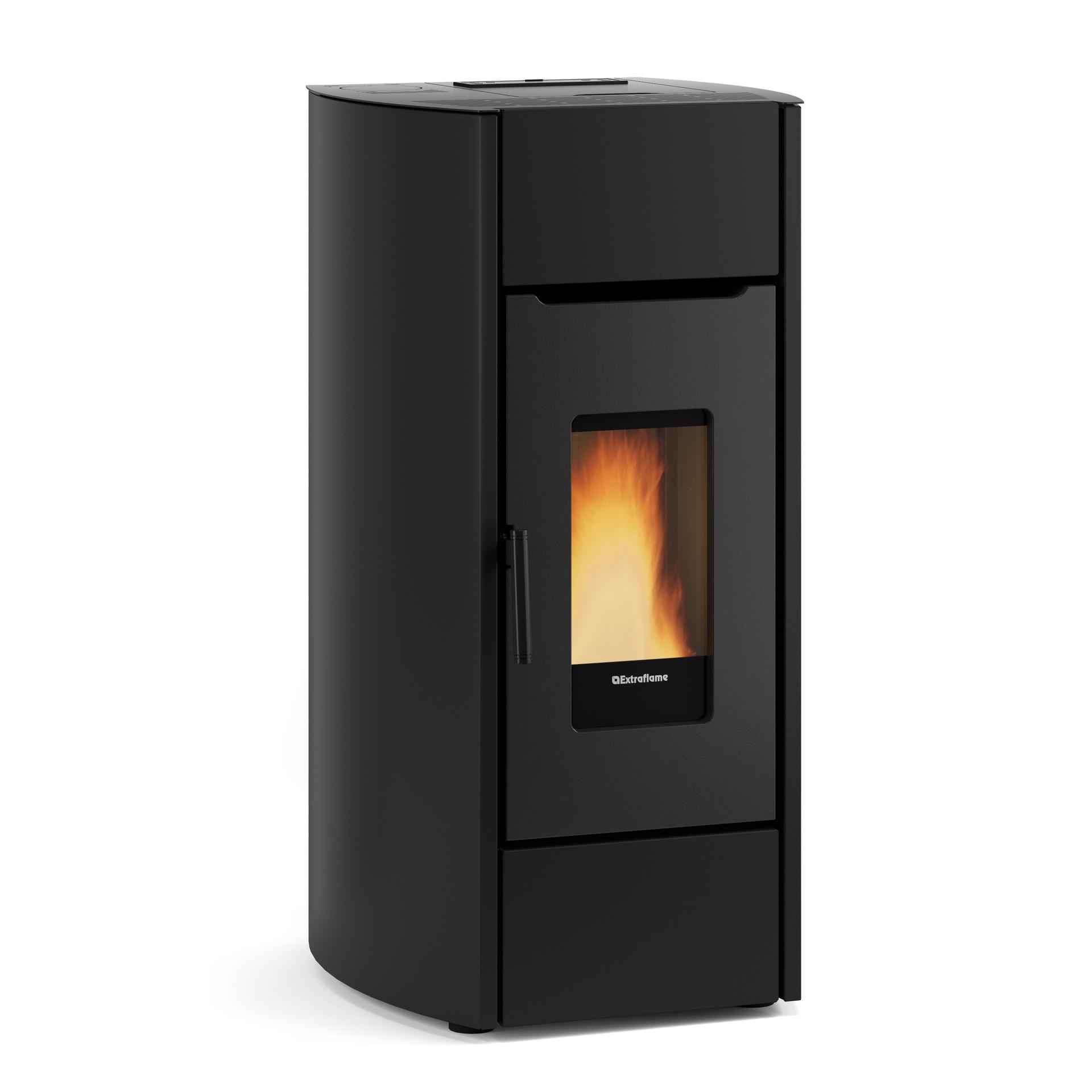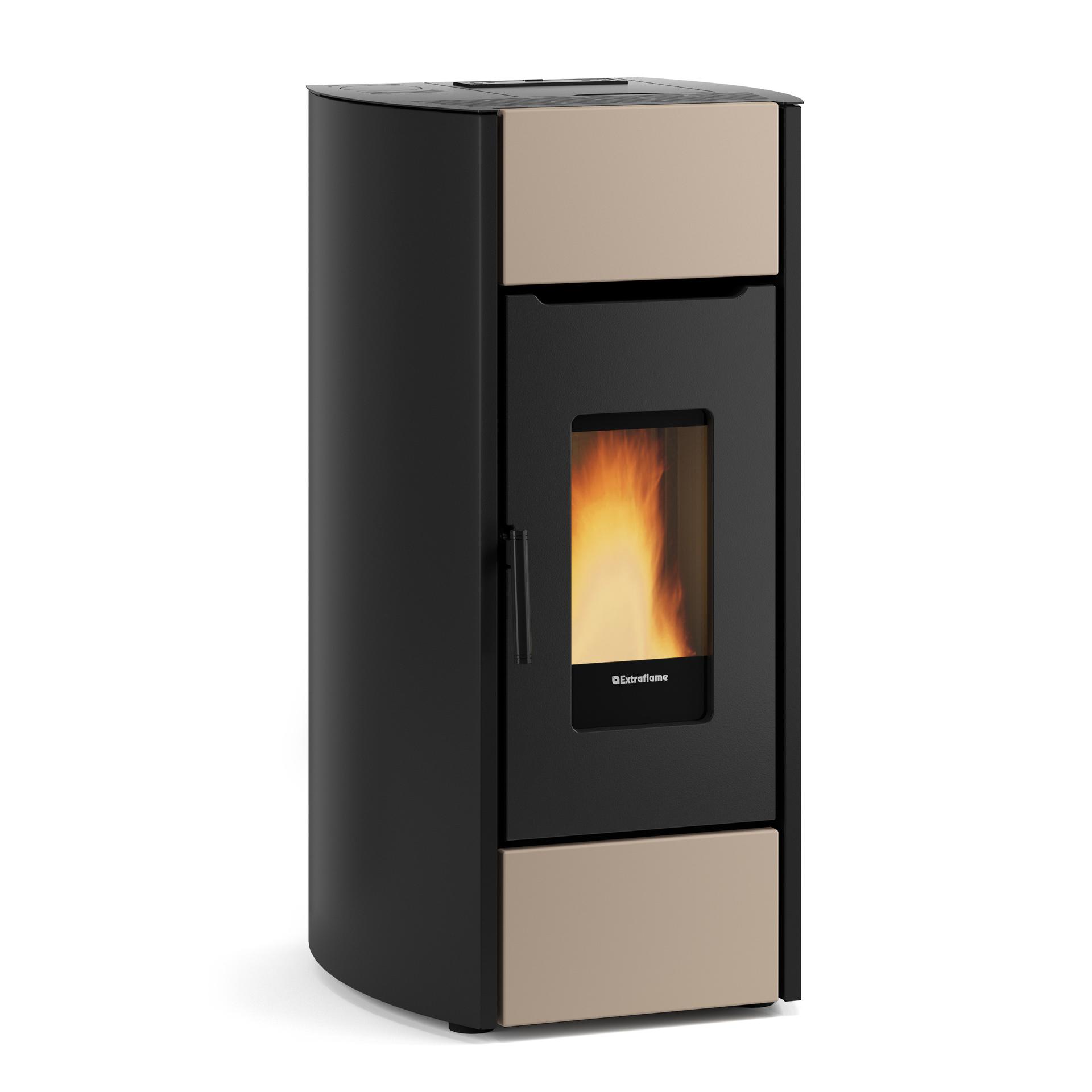 The La Nordica Extraflame Mirka is the stove with the rounded edges and linear design that integrates ceramic front elements for a distinctive design. Considering also the smoke outlet options that can be rear or top, make this pellet stove easy to place in the room.