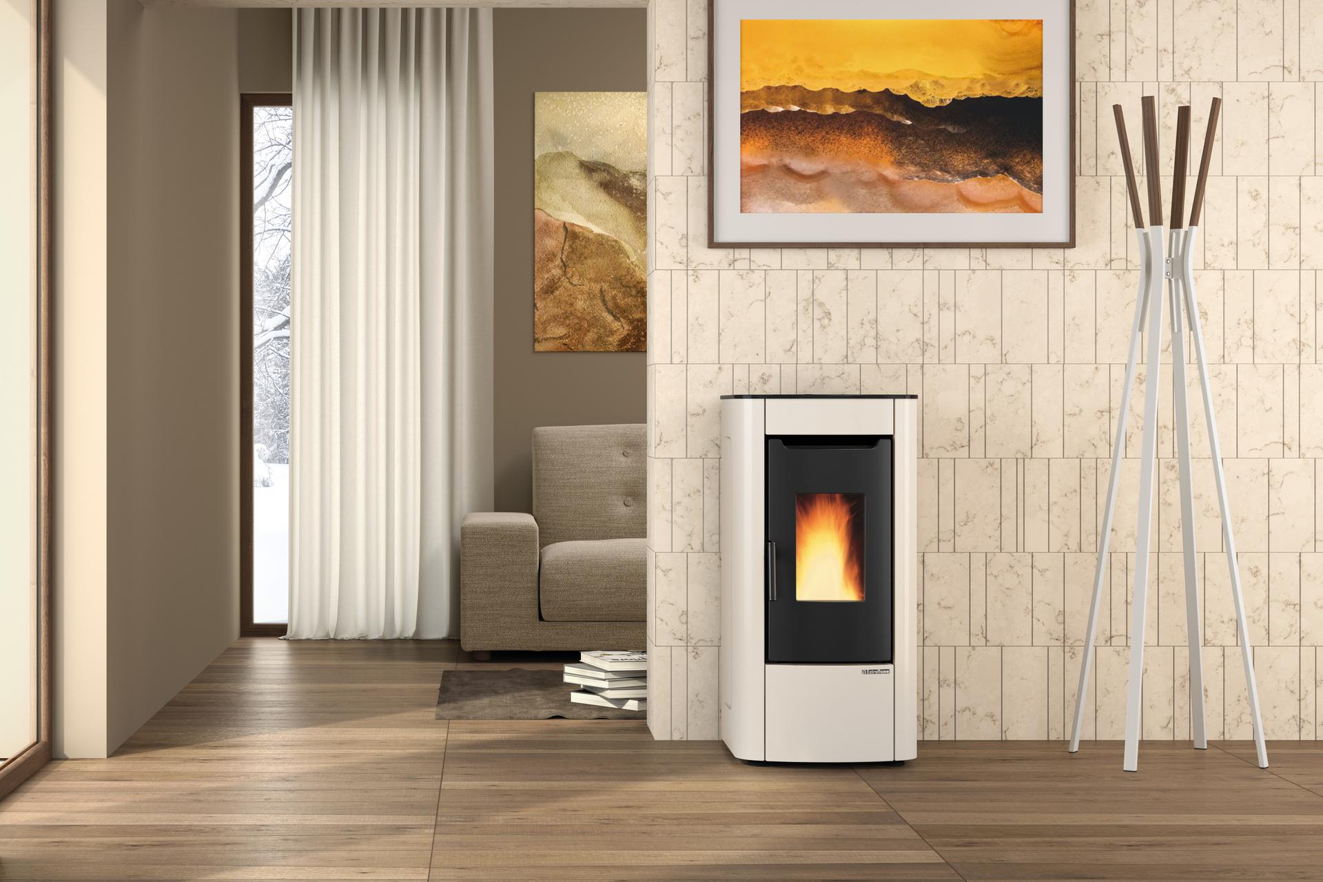 The Sabry pellet stove is the right solution for those who demand a simple design form that integrates more safety and performance. This stove is equipped with a hermetic pellet tank. The hearth, the door fireplace and the brazier are made of cast iron.