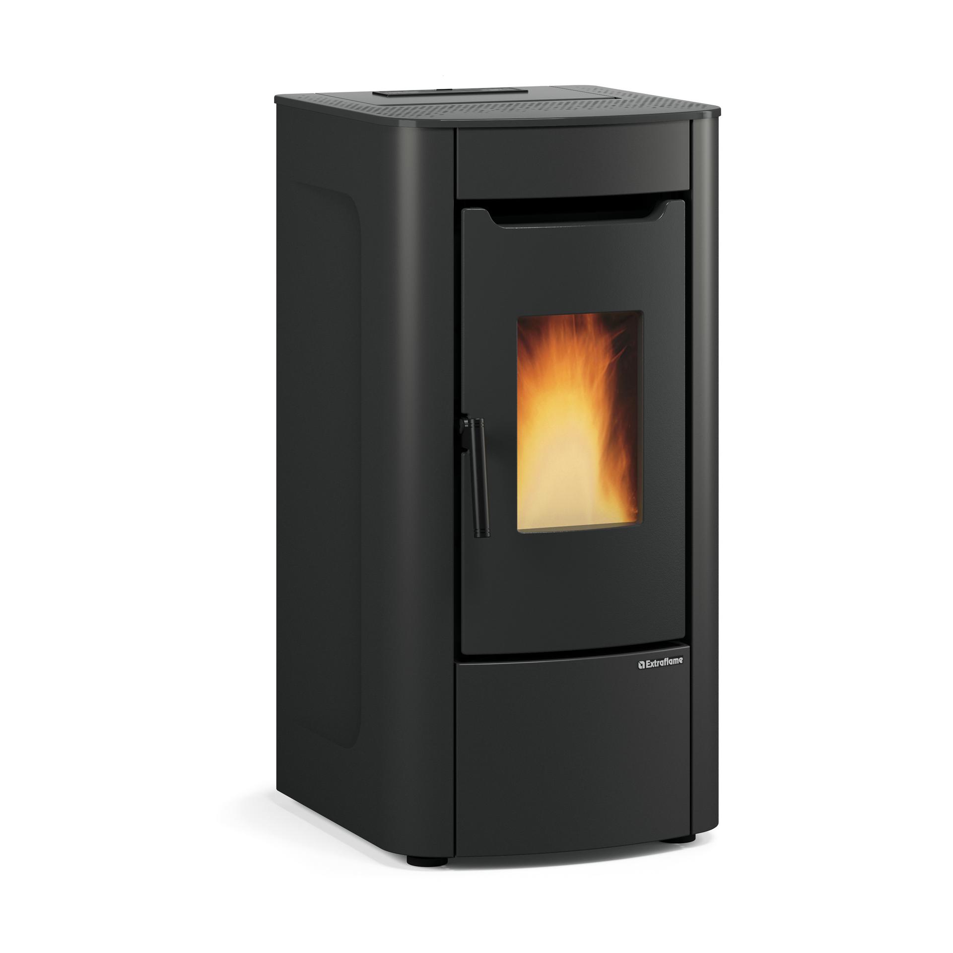 The front ventilation integrates the Comfort function. The stove comes standard with a backlit IR Touch remote control.