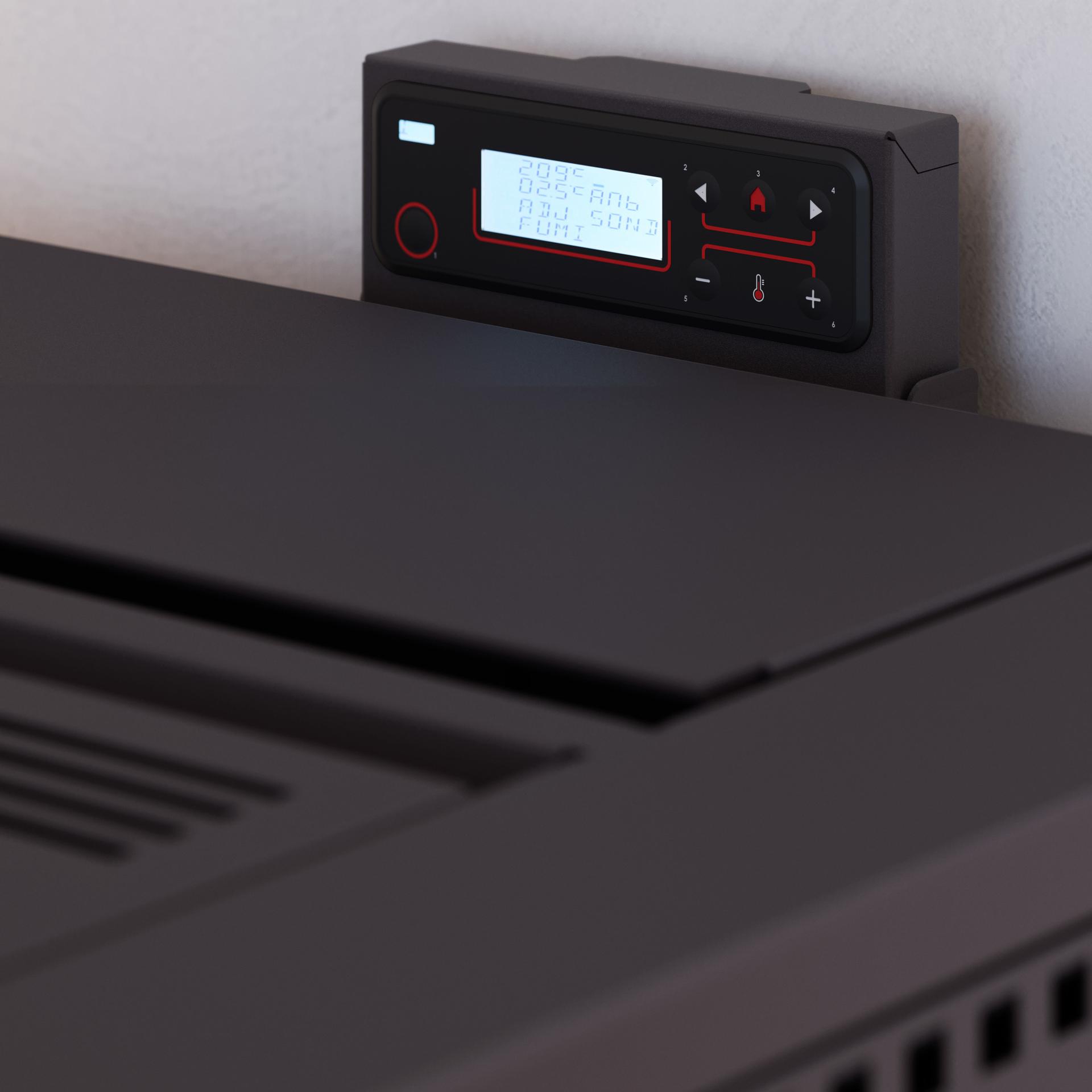Sealed chamber Pellet stoves that are completely sealed from the room in which they are installed. The stove draws combustion air directly from the outside and not from the room in which it is installed. The main advantages are: lower emissions, greater safety, higher efficiency.