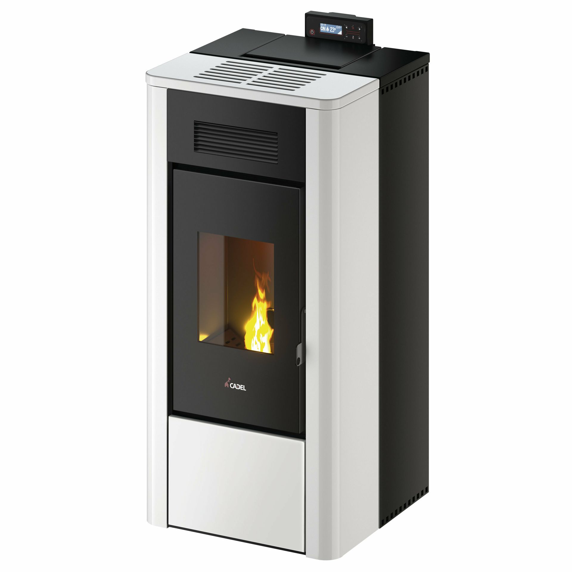 Pellet hydro stove with a minimal chic design with external facing in painted steel.