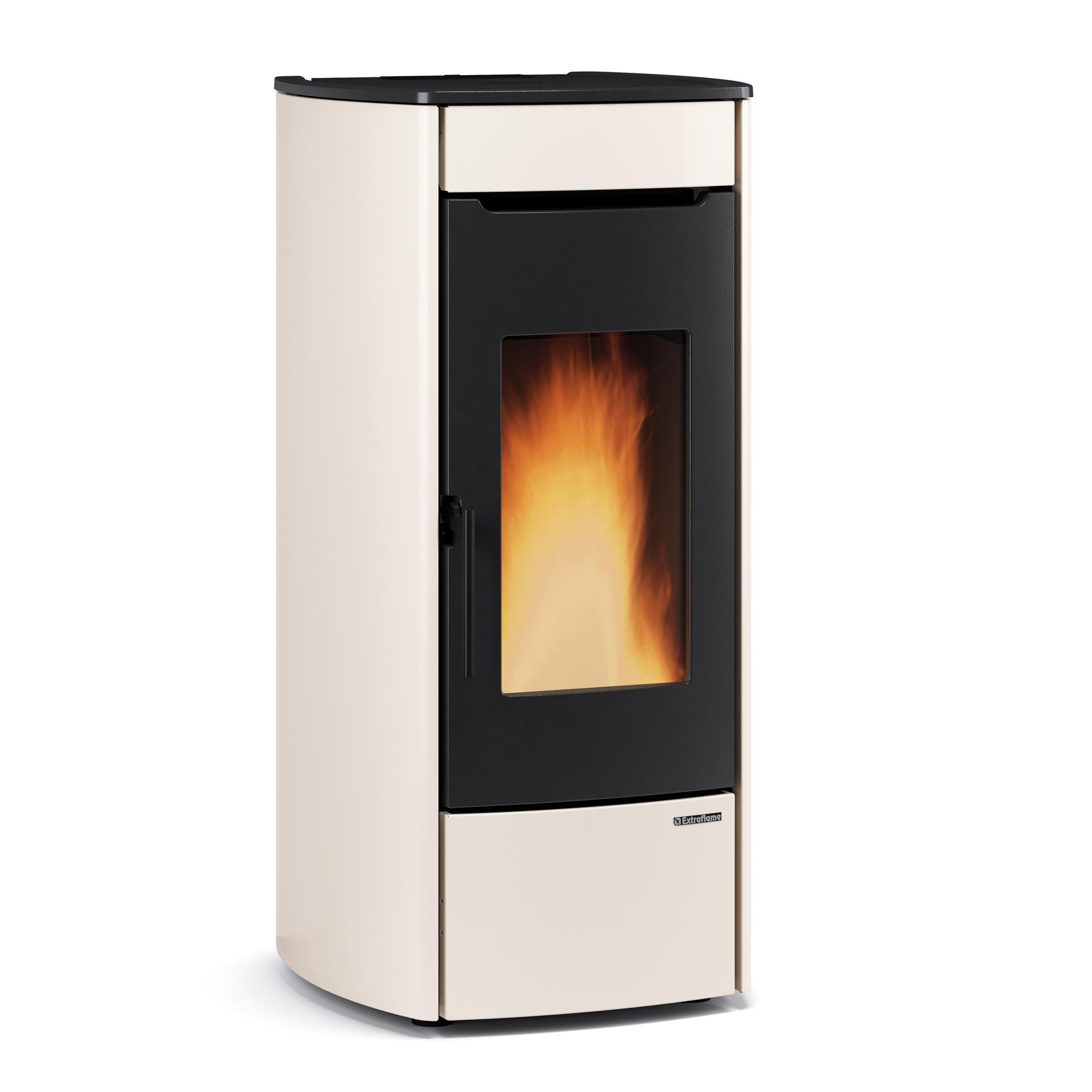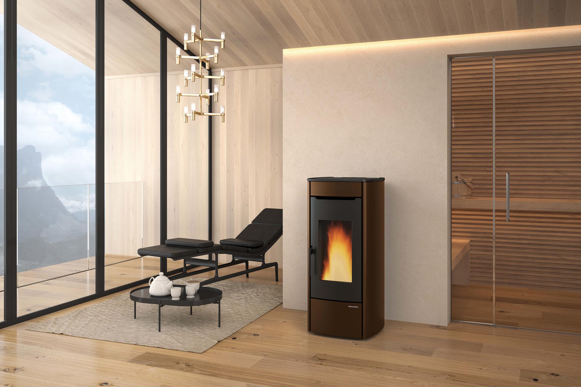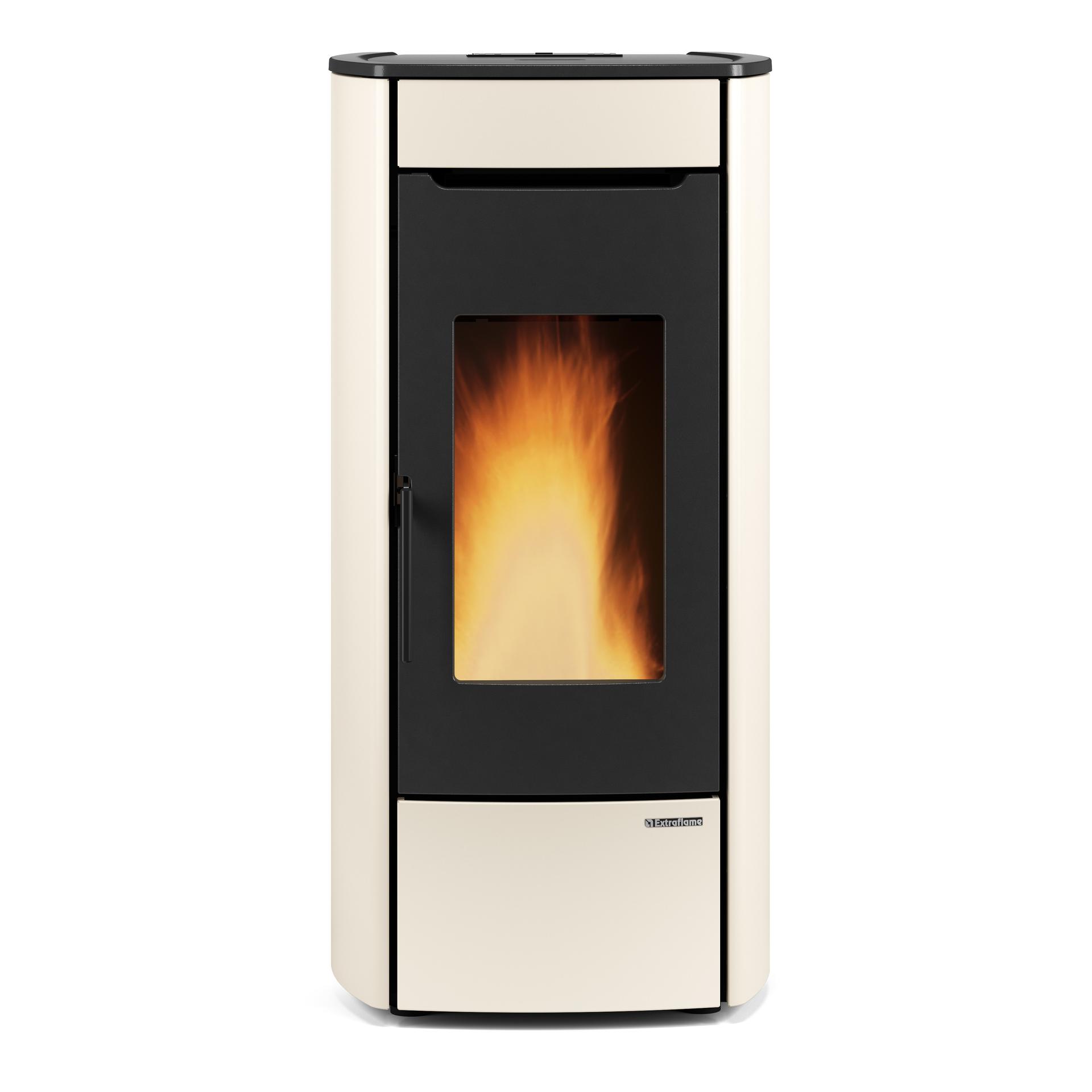 The termo pellet stove with a rounded linear design integrate the front ventilation managed by Pro Air Setup that can be disabled. The thick steel combustion chamber and cast fire door ensure robustness.