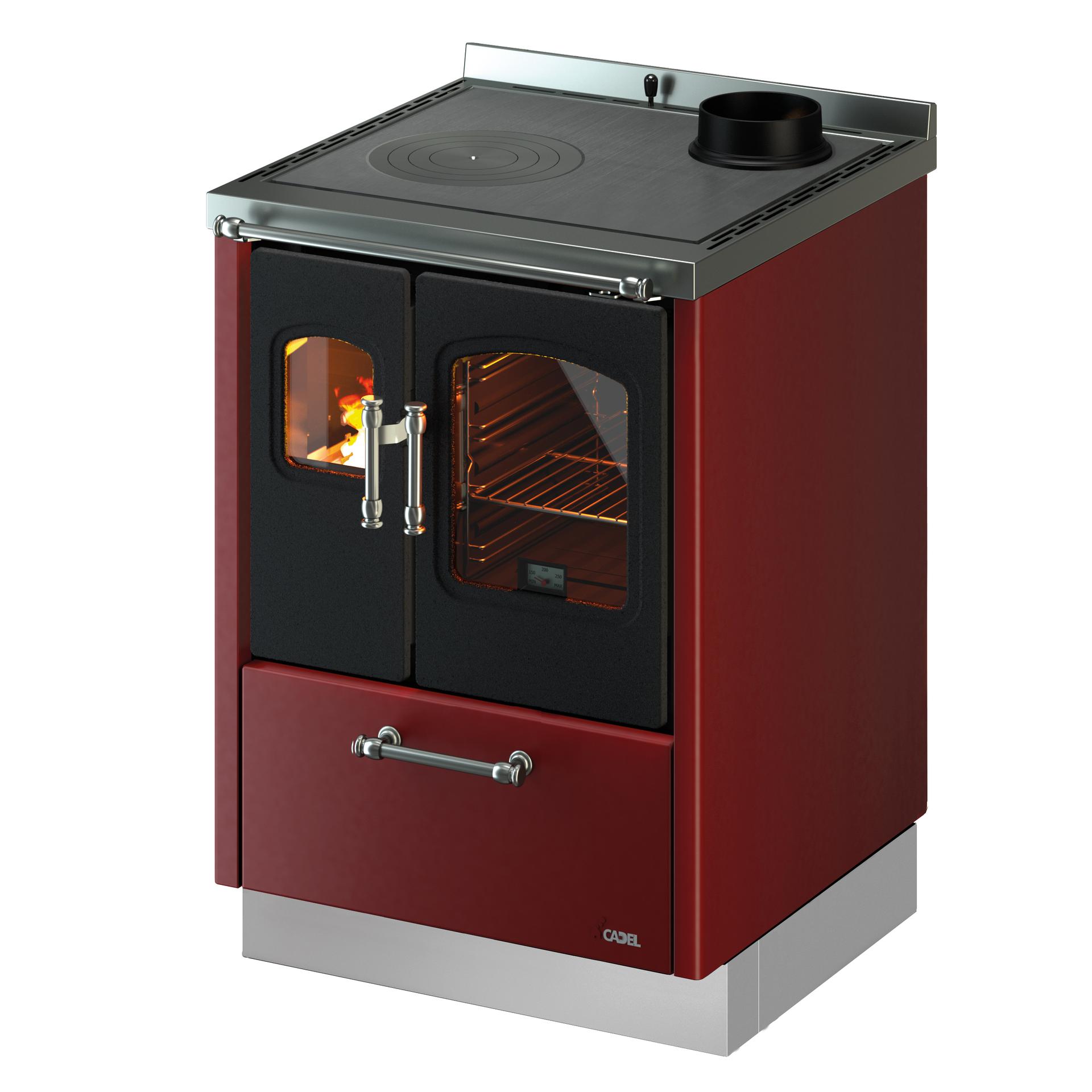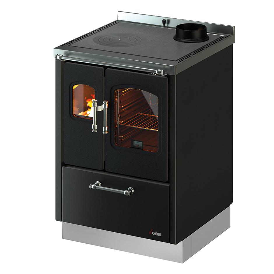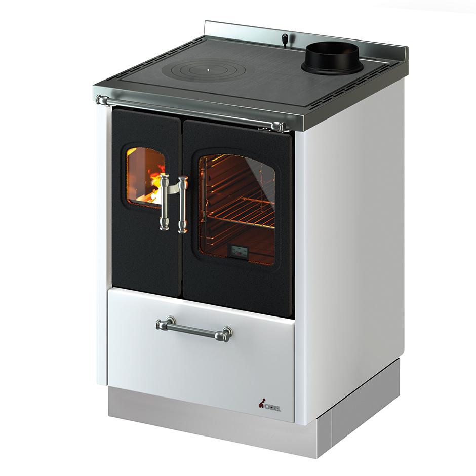 Free-standing or built-in wood cooker suit any setting. They feature cast iron doors, elegant steel handles and handrail, and combustion chamber with refractory material interior. The accessories include decorative feet and a steel base.