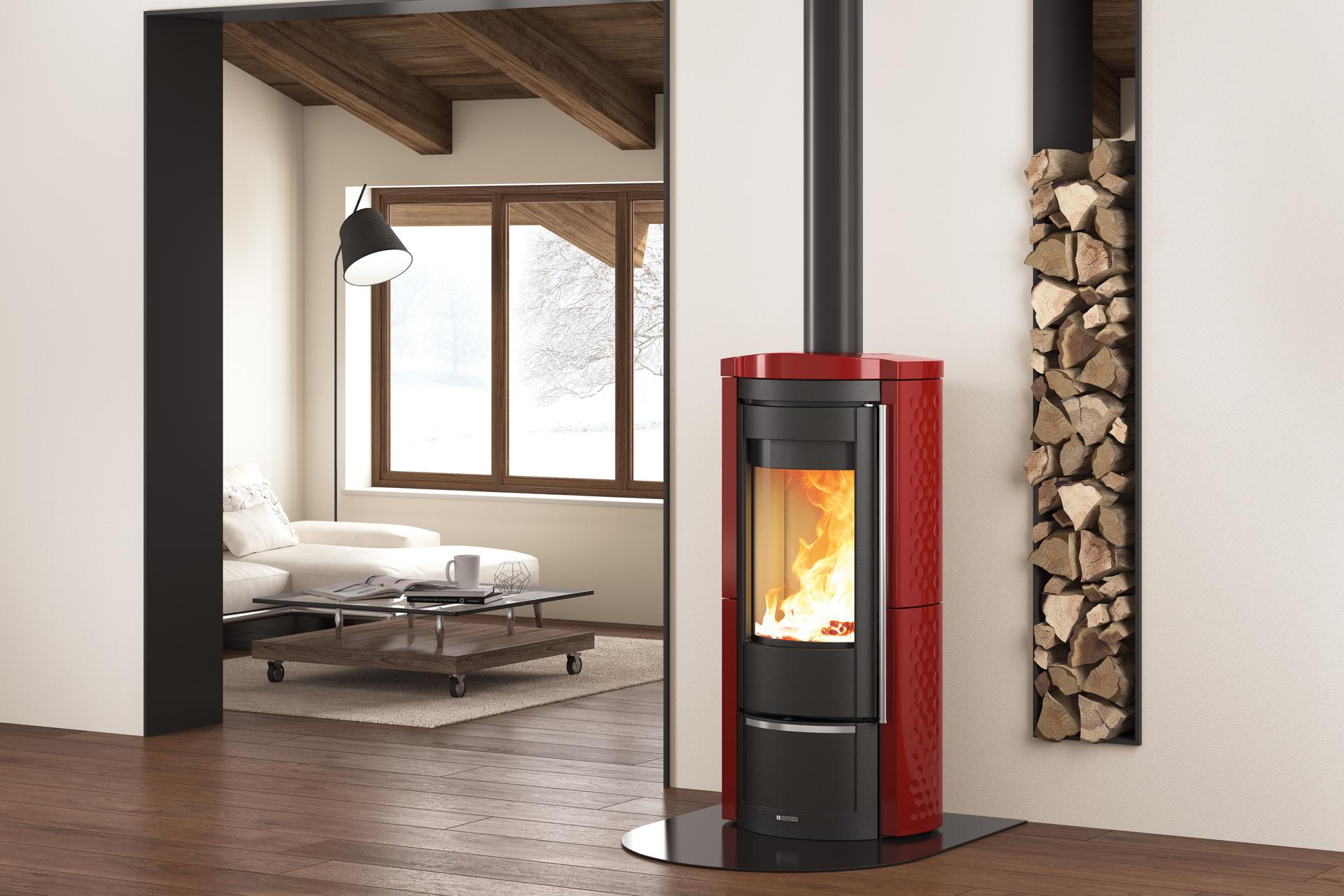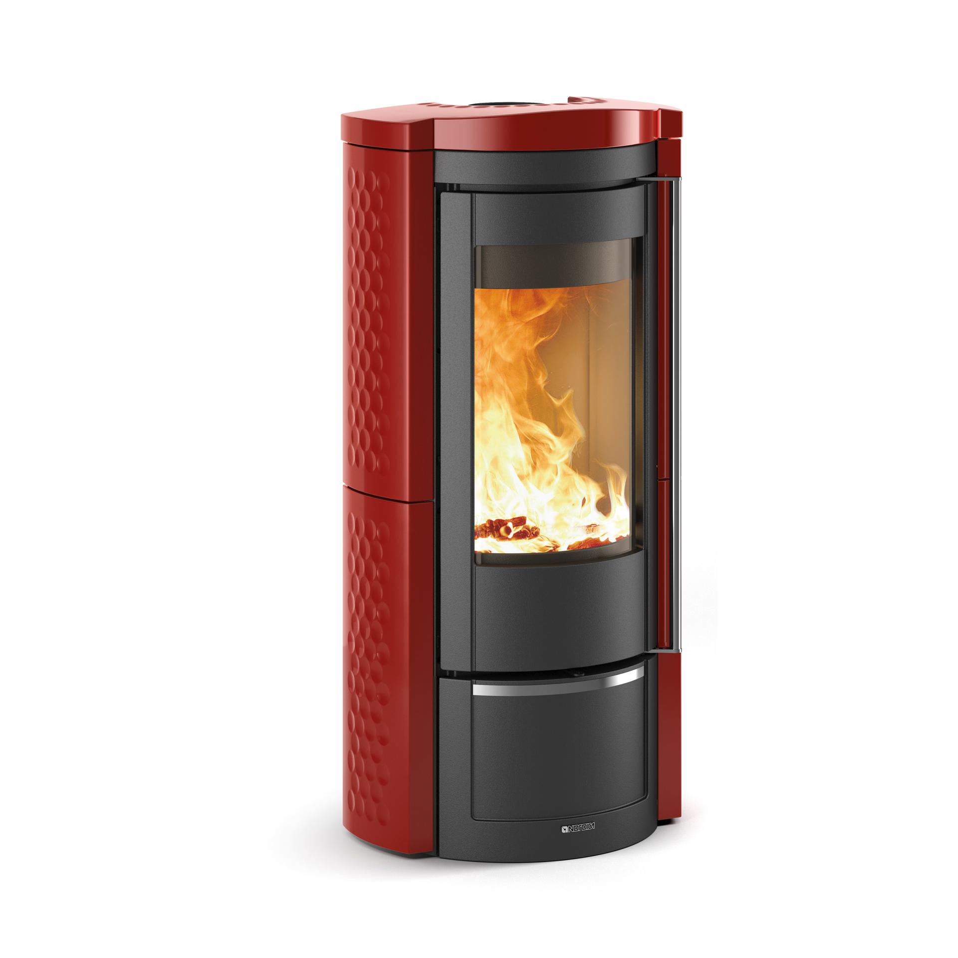 La Nordica Liu is a wood-burning stove with curved ceramic glass and is characterized by its special rounded design. The Liu is a wood-burning stove that can easily be placed in a corner or anywhere else next to the wall. The structure is completely in enameled cast iron with the majolica elements. The internal facing of the stove is in cast iron and Nordiker.