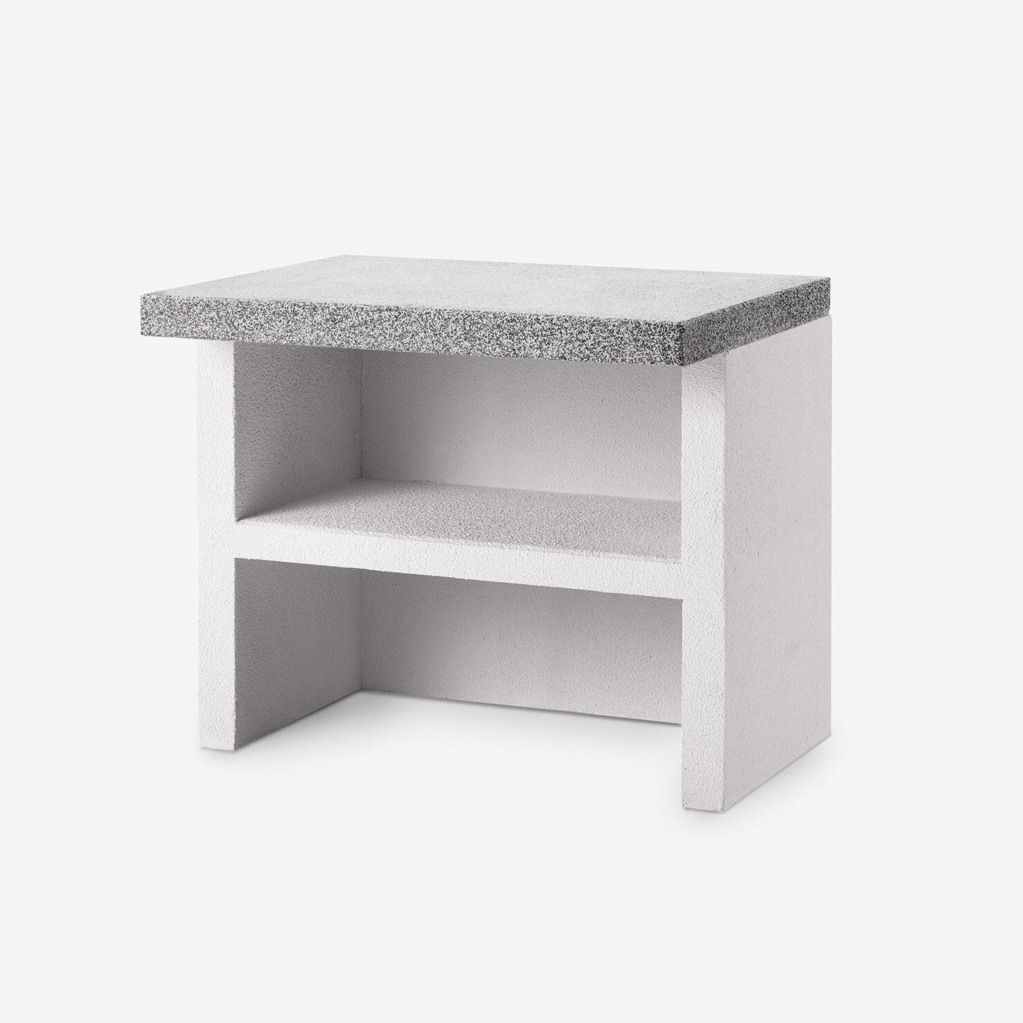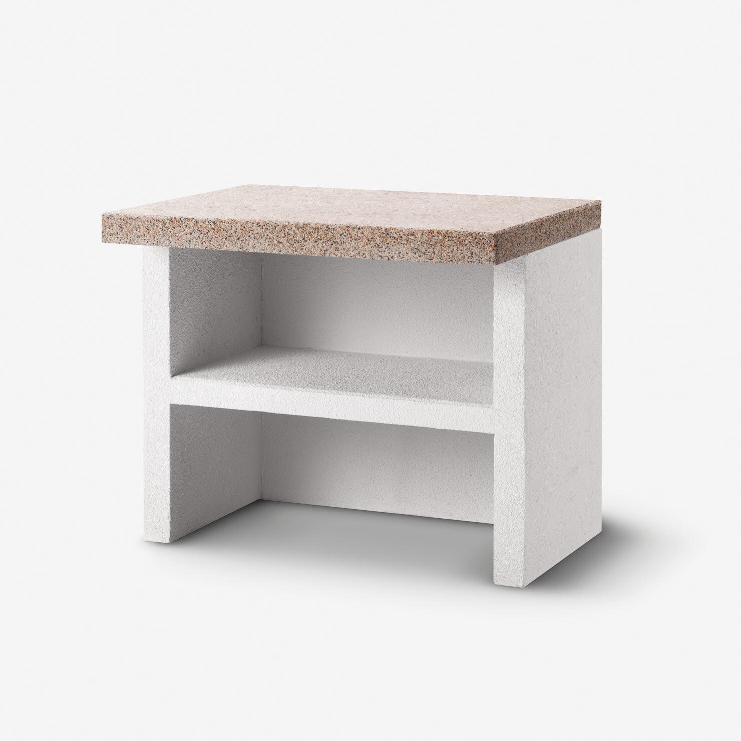The worktop module is provided with a back panel and a practical shelf.