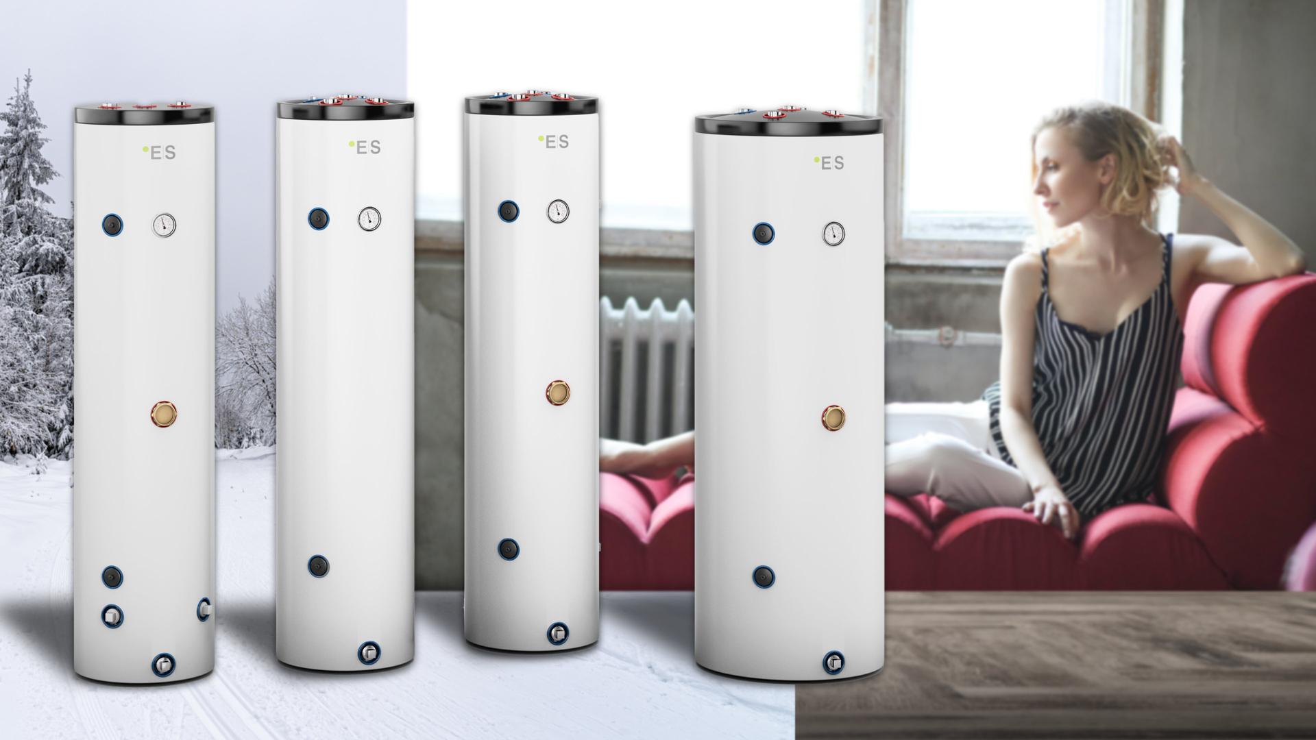 Two of the ES buffer tanks have pre-installed hot water loops. When the buffer tank is connected to an ES air / water heat pump, the tap water can be preheated through the buffer tank loop. In this way, the hot water can also be almost completely heated with a heat pump and, if necessary, an electric heater can be used to achieve the sufficient hot water temperature.